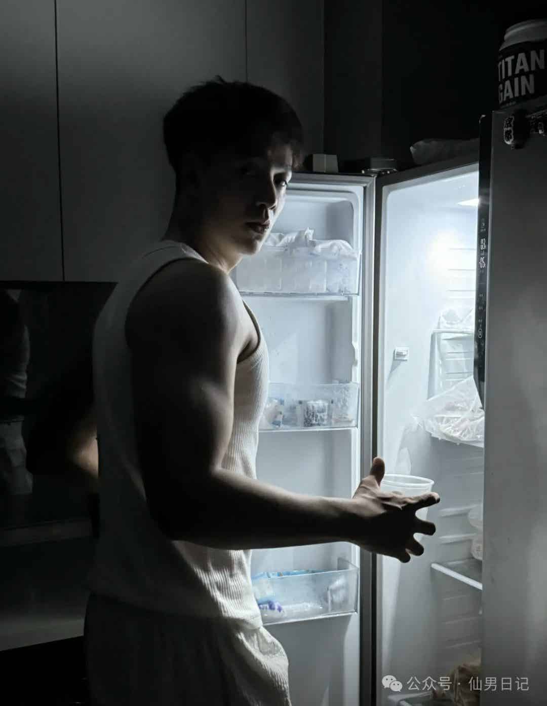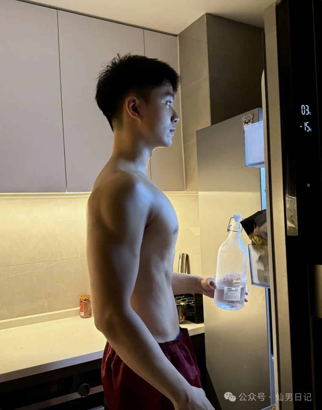 健身博主在推荐小哥哥的时候也不忘大赞他是成都TOP级体育生。 有一说一,小哥哥的身材虽然没有那种钢筋级别的紧实度,但是好在匀称,最近他po出自己一系列健身房里的拍照,只能说,气质上室友天菜的味道的,反而这种气质更加难得了! 目前仅仅是薄肌的状态,无论是正面还是侧颜,小哥哥还是有浅浅的腹肌的,但是肌肉线条并没有那么性感紧致,好在他现在基本上每天都泡在健身房,相信以后的肌肉会越来越棒! 不过整体来看,小哥哥的居家日常反而比健身房里更有看头。 即使没有任何身材上的裸露,但是松弛的状态,搭配紧身背心反而让人充满遐想…… 谁懂冰箱照在胸肌上的含金量啊!昏暗光线带来的暧昧感,反而更让人心动诶! 最后必须推一波小哥哥的居家拍照,依然是熟悉的白袜出镜,这个视角看,禁欲感更加强烈了~