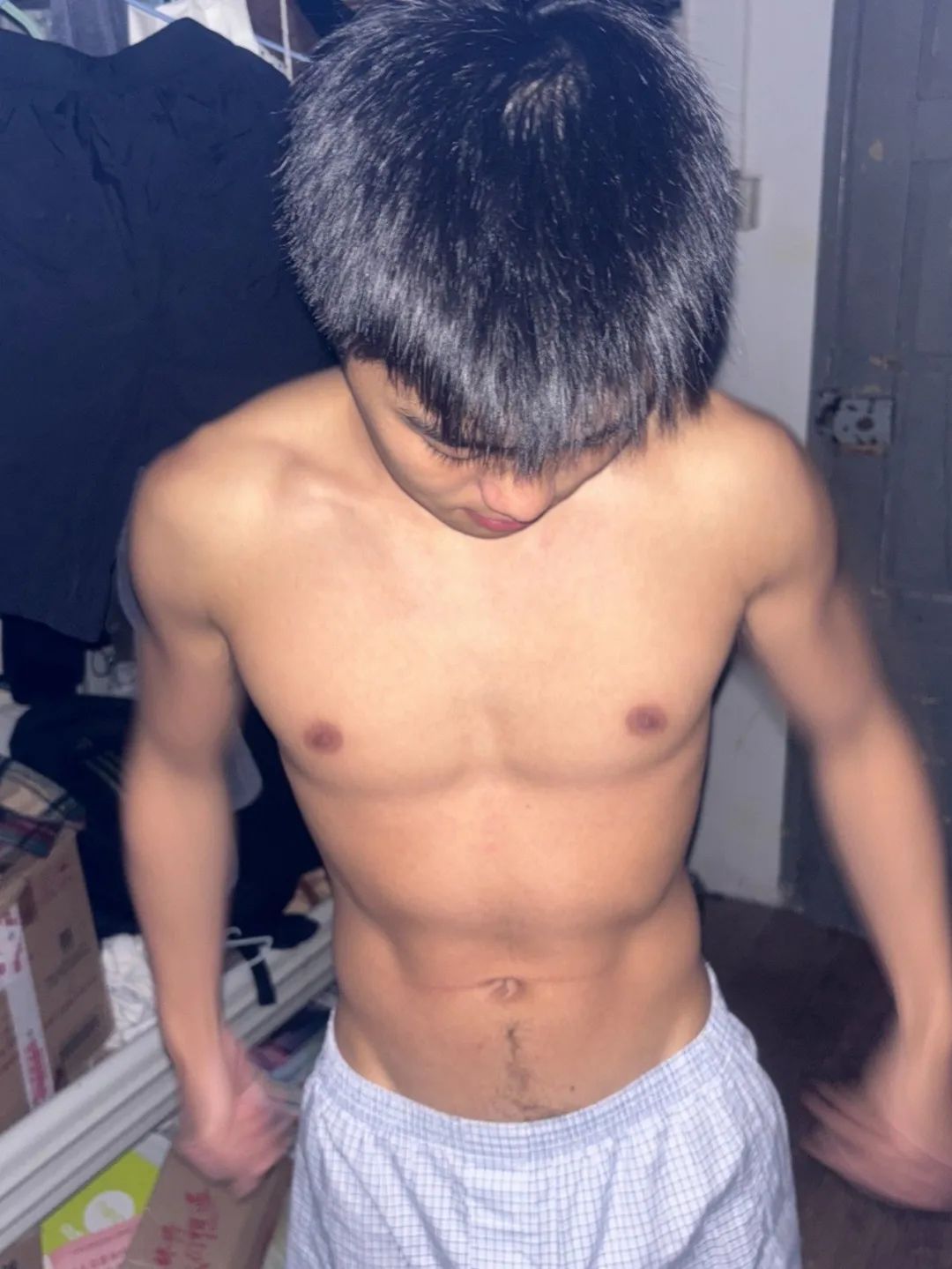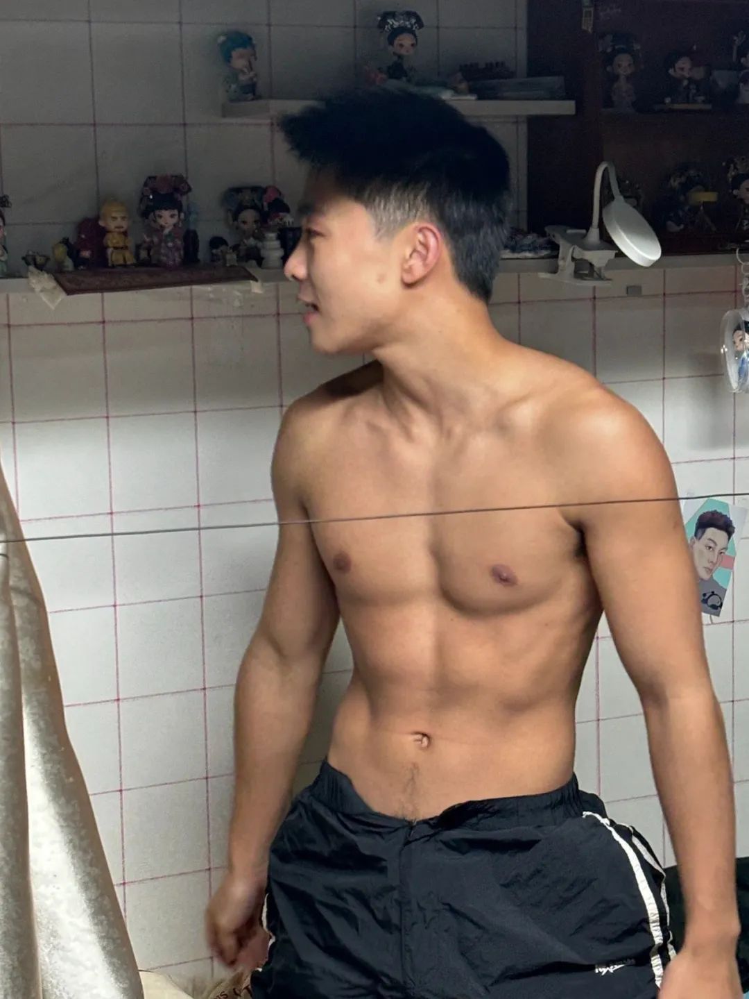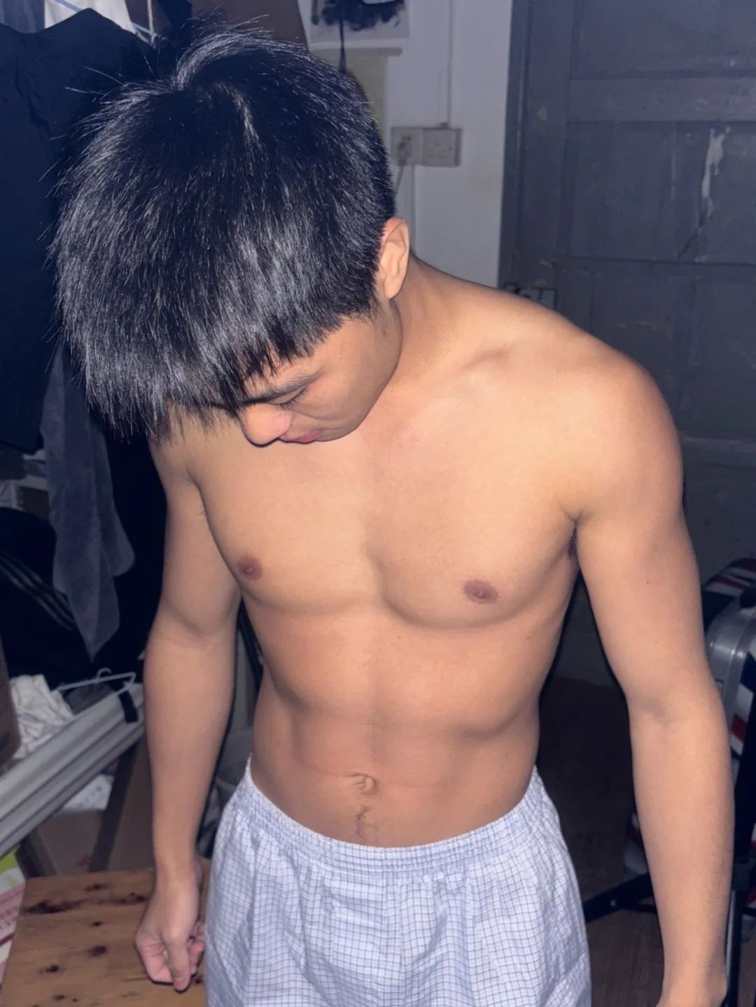 他把行李一扔,T恤一脱,直接就开始整理床铺。那一刻才发现——这人,不只是帅,而是有腹肌的帅。