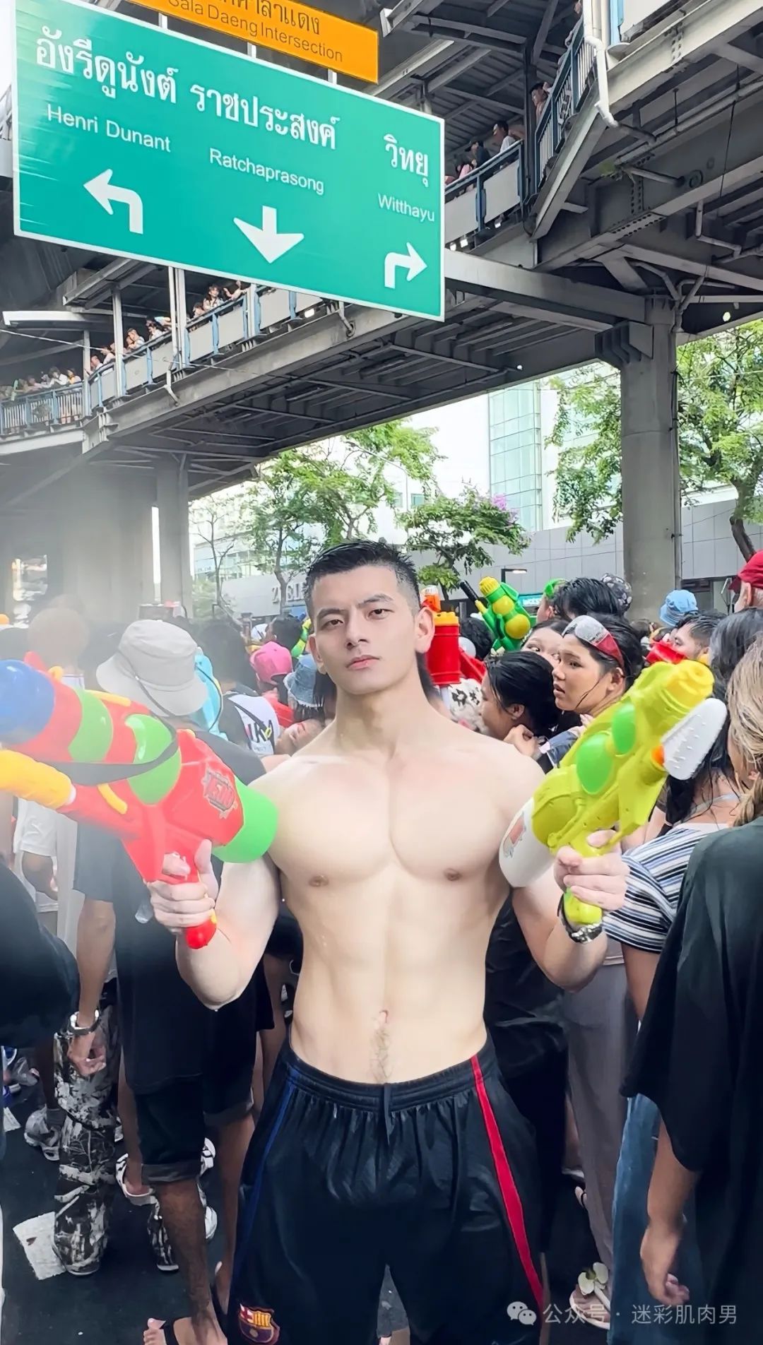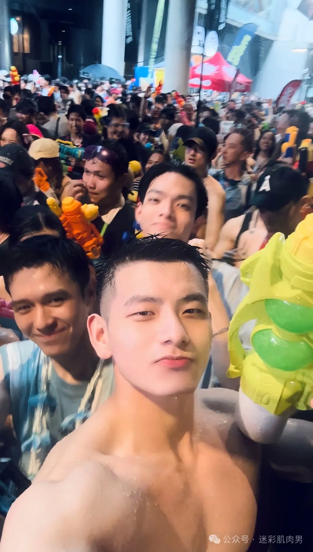 2025泰国泼水节被包围滋水的翘臀长腿男是他?太大啦!