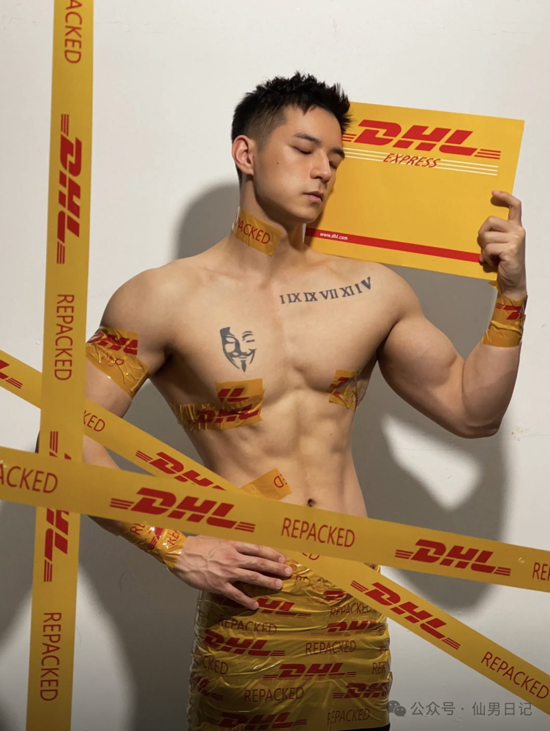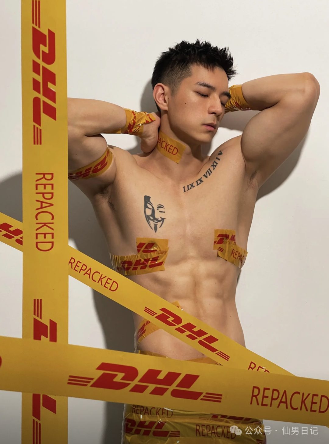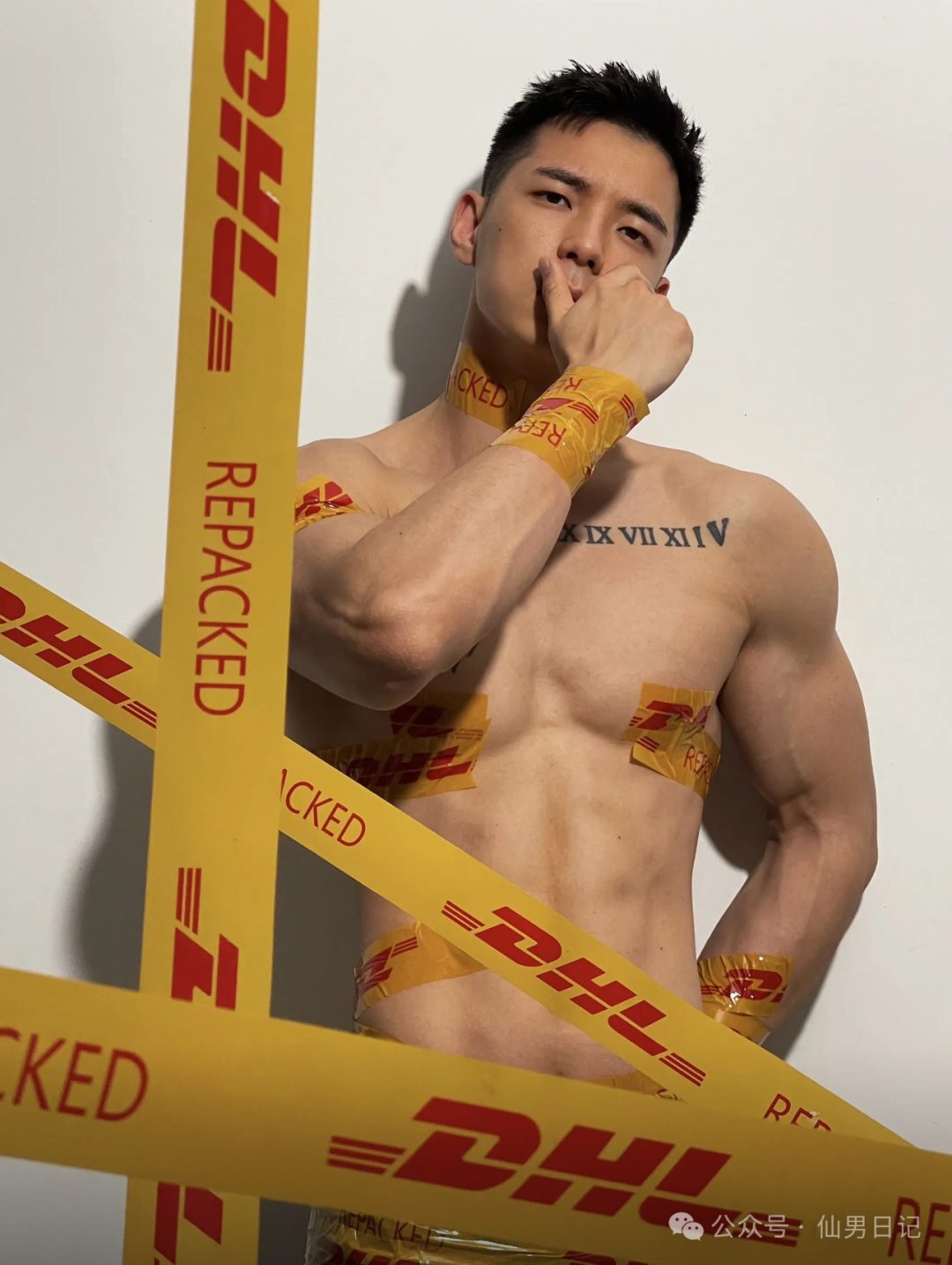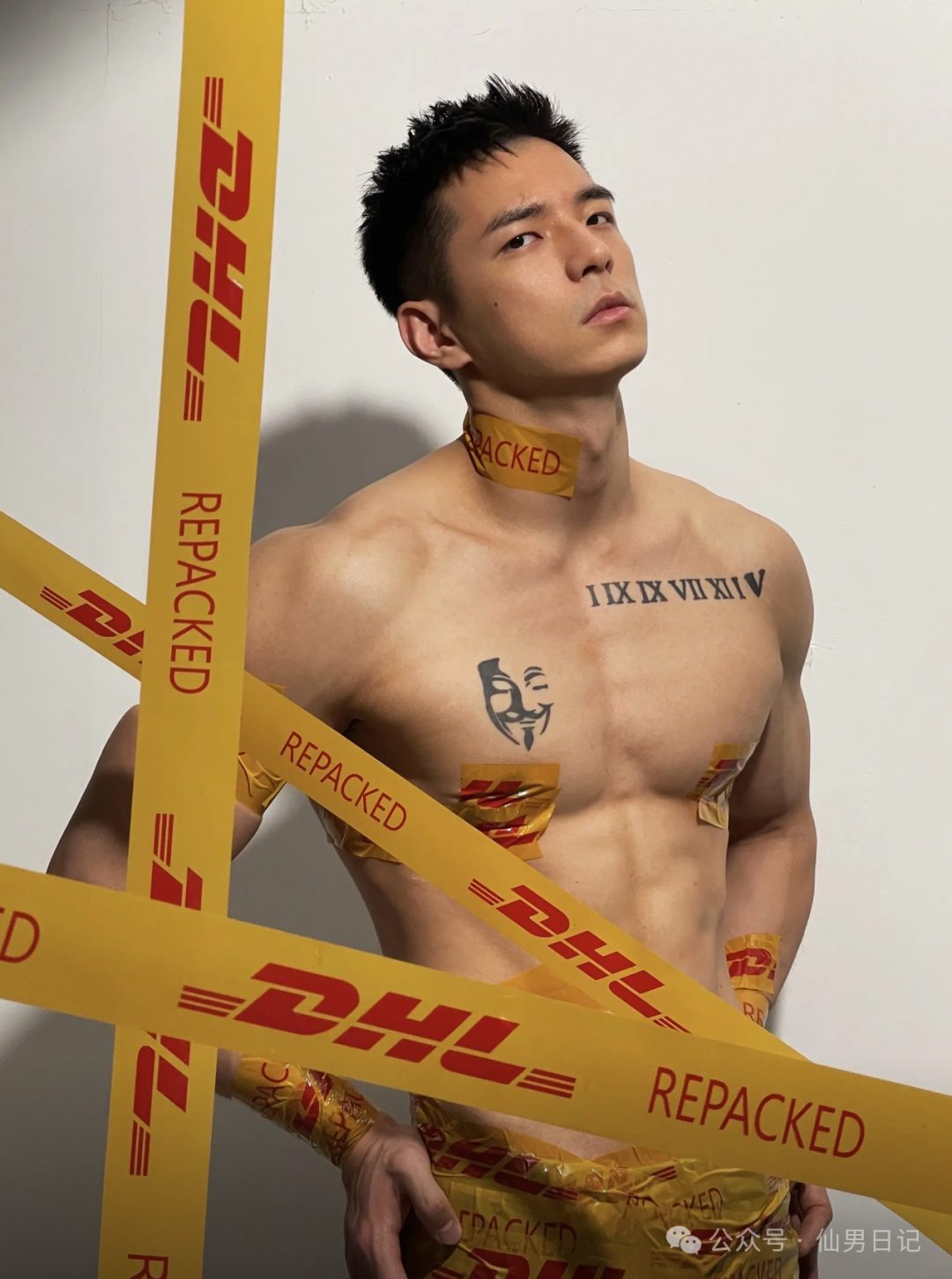 前段时间胶带变装在社交平台上爆火,几乎体育生里,人手一套变装,每个人都在变身快递,黎黎也不能免俗。于是……他在镜头里也把自己捆绑成了这样……