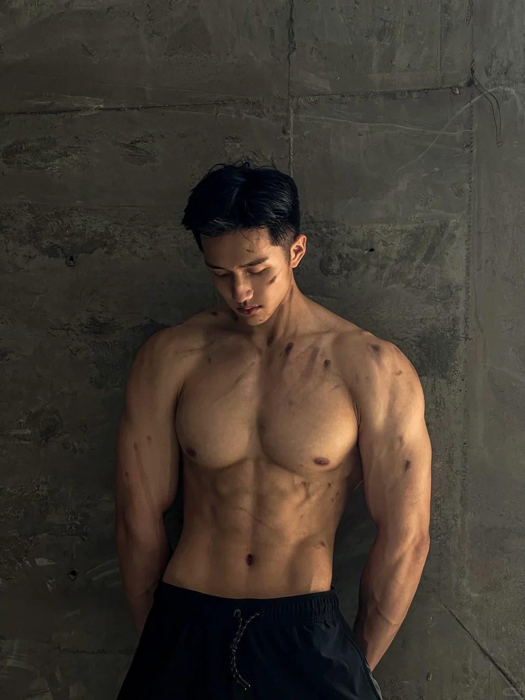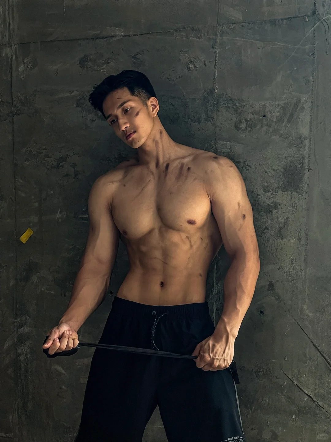 刷到他和摄影师@丞周合作的战损肌肉写真,我整个人都斯巴达了!地下车库的暗光背景下,他穿着紧身背心,汗水顺着麒麟臂滑下来,腹肌线条在光影里若隐若现,隔着屏幕都能感觉到一股子阳刚气息扑面而来。弹幕刷得飞起:“这谁顶得住啊!”“小哥哥集万千宠爱于一身!”我看了也忍不住想喊:这样的男朋友,你想要吗?