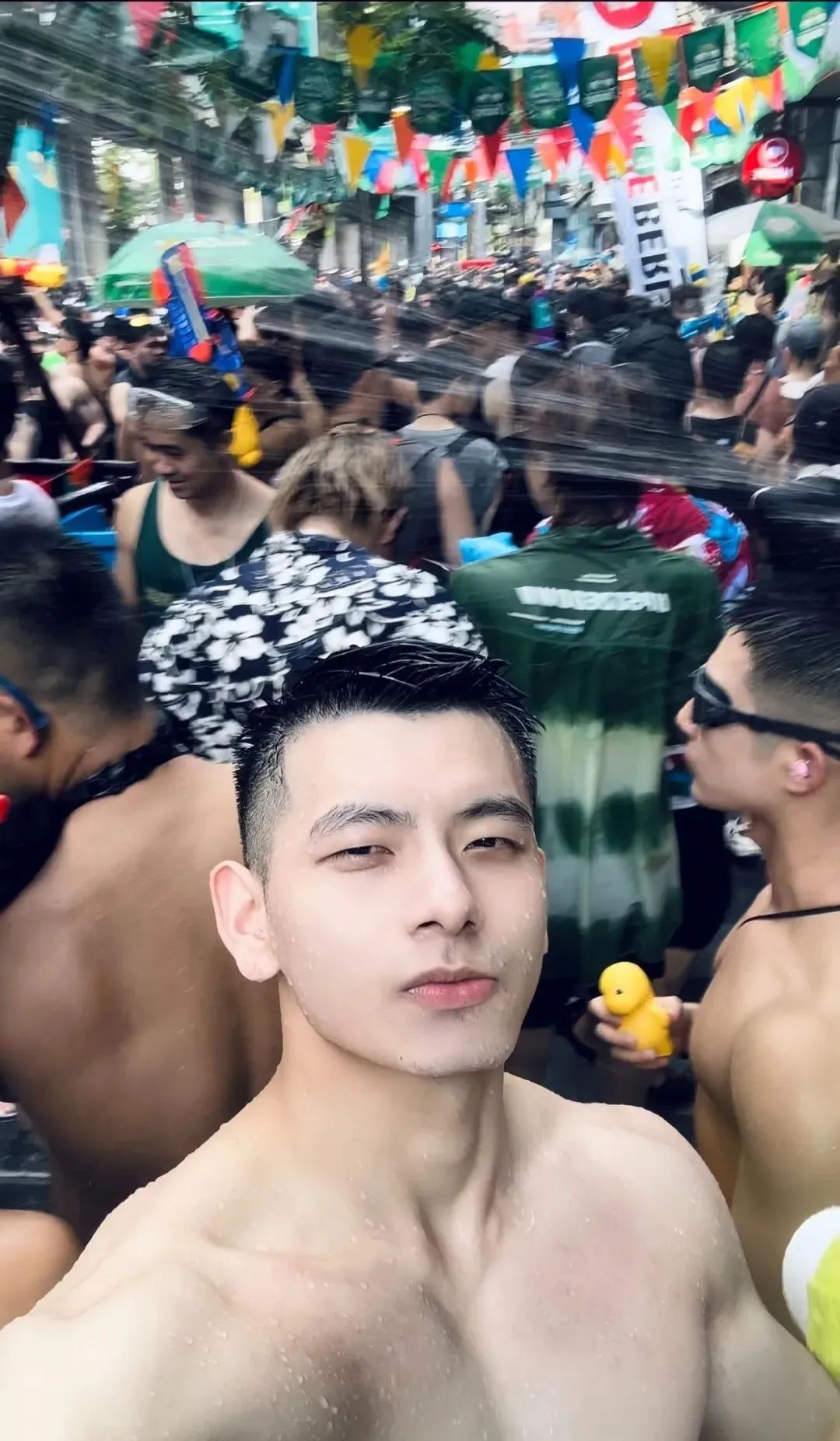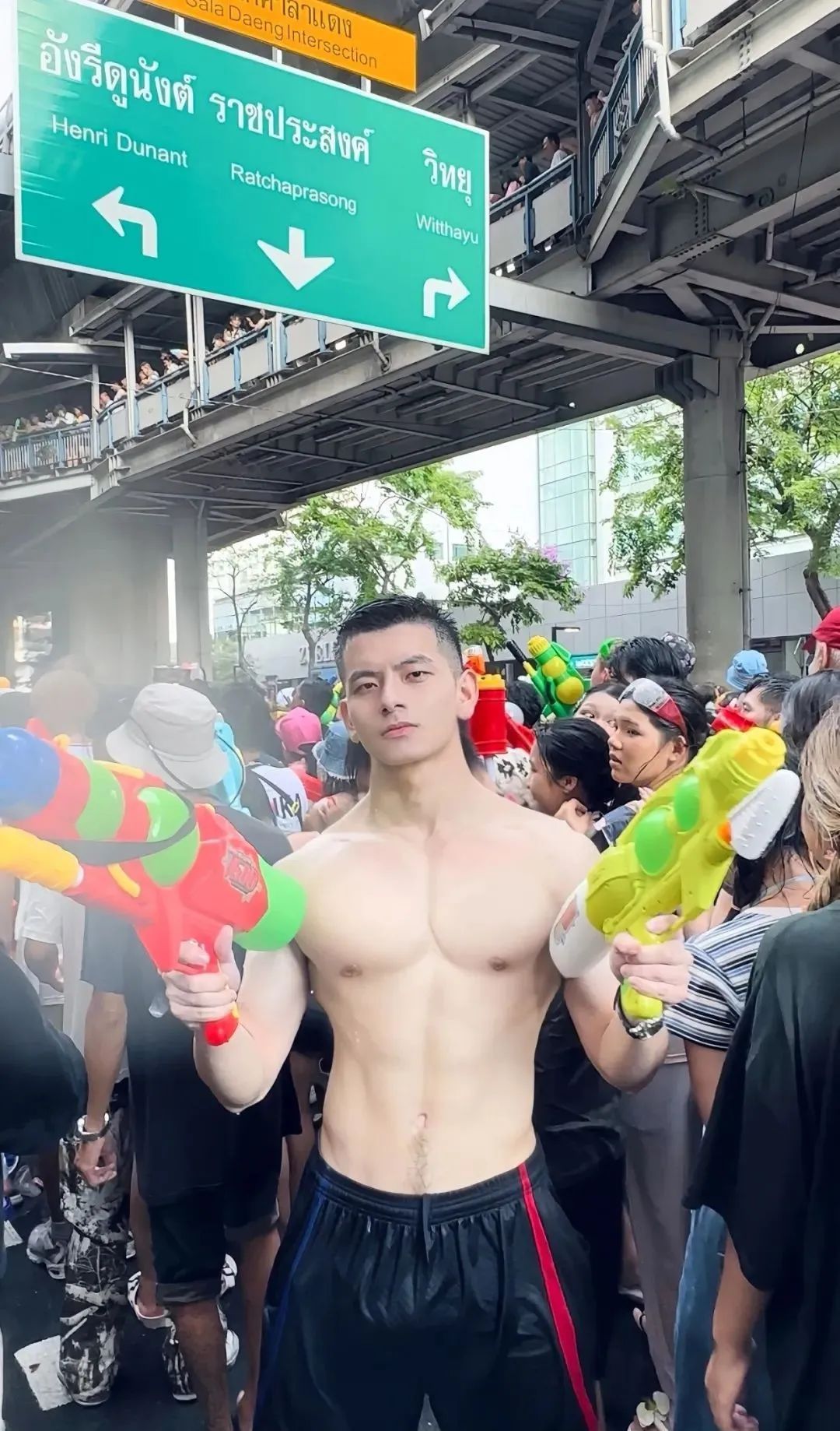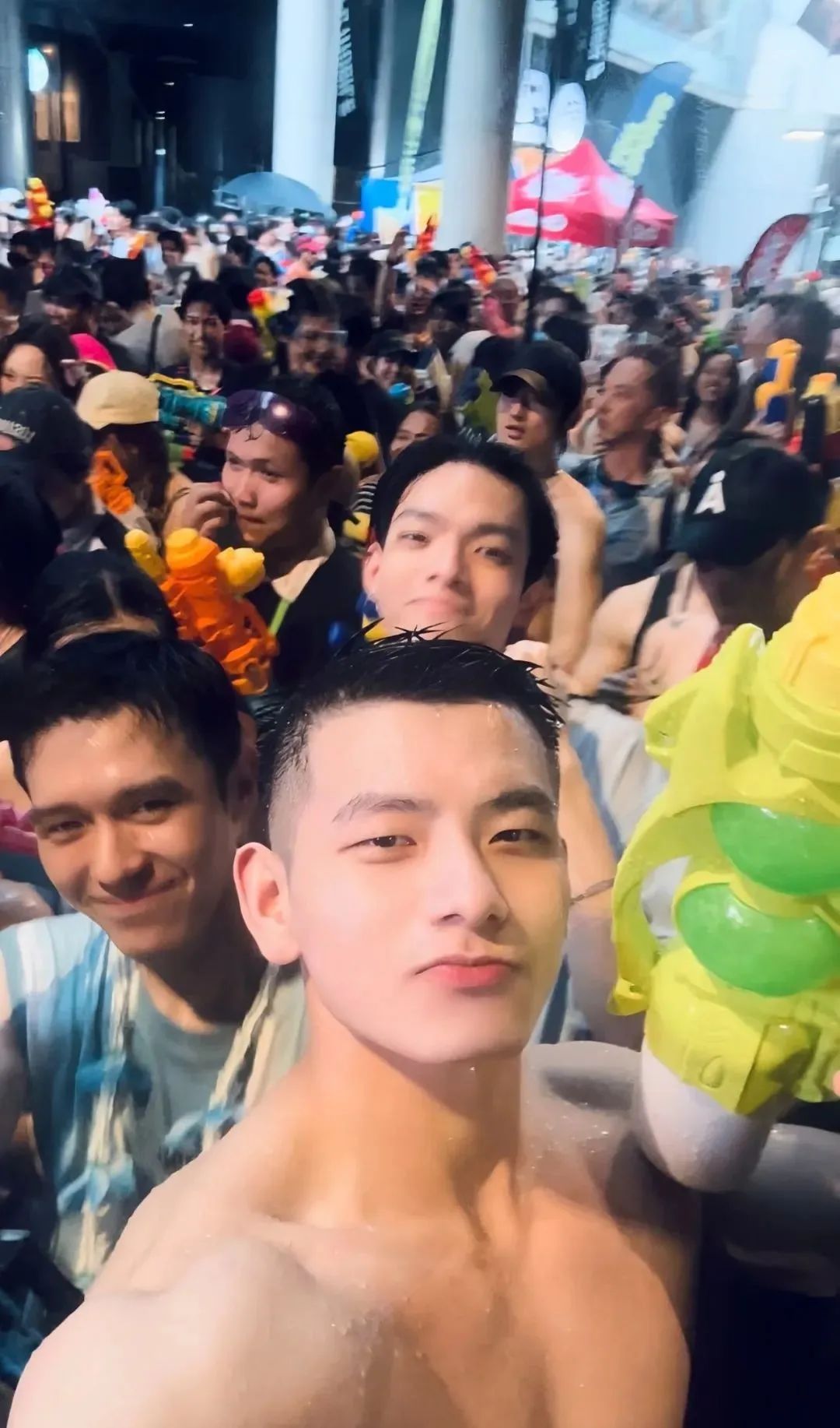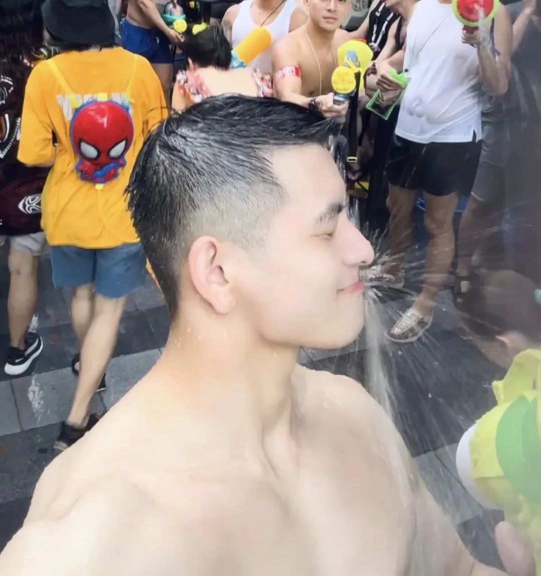 2025泰国泼水节他最火?寸头白皮肌肉帅被喷惨了!