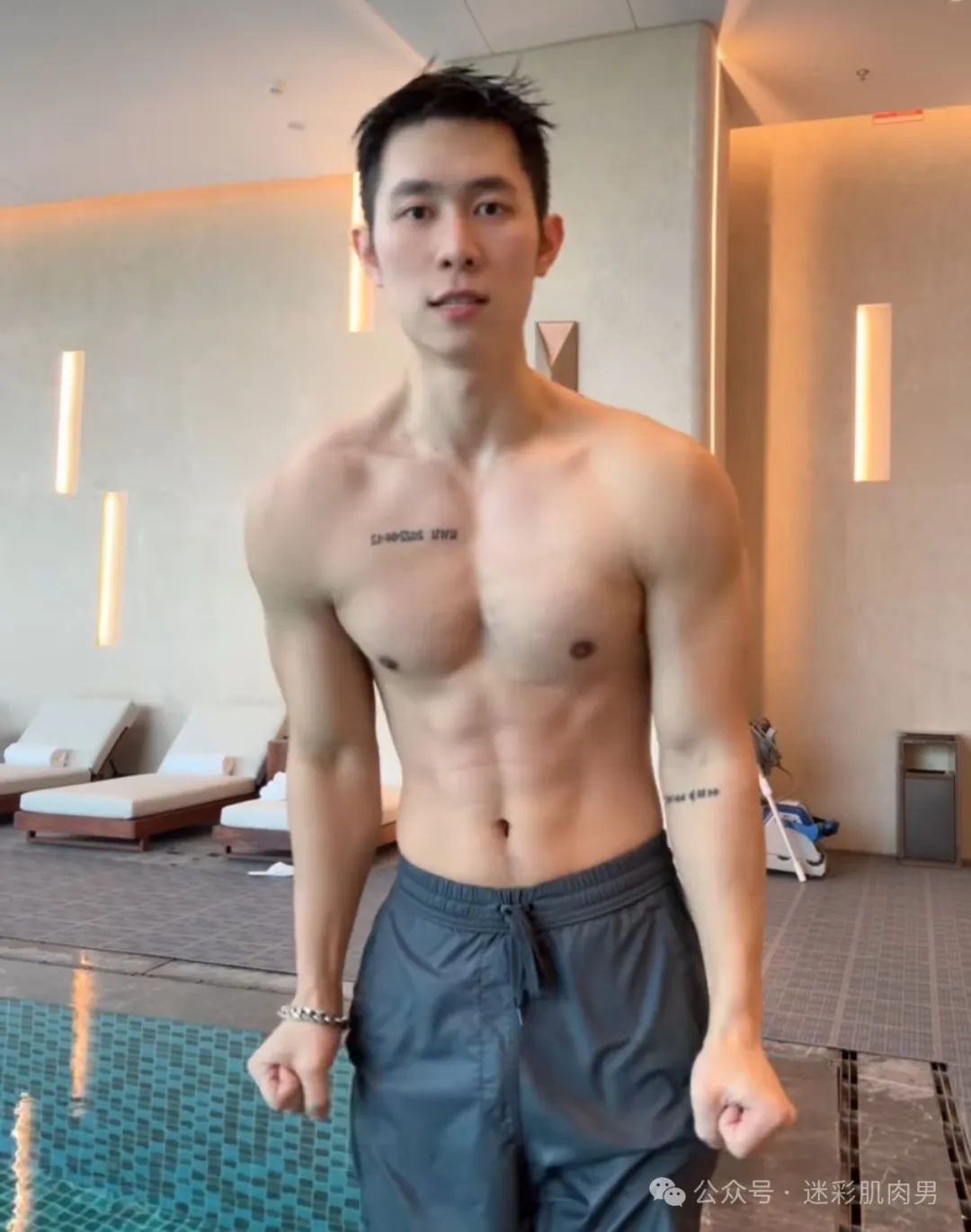 肌肉线条非常明显,每一块肌肉都充满了力量感。他的胸肌和腹肌十分发达,每一块肌肉都紧实有力。不仅如此,他的背部肌肉线条也非常迷人,流露出运动员的气质。不少人在评论中表示嫉妒,纷纷向他请教健身方法和饮食计划。古铜色的肌肉男帅哥肌肉太性感了,长的帅气,有气质,穿什么都是那样的性感帅气,喜欢他游泳的样子,穿运动裤的大长腿太吸引人,腹肌明显荷尔蒙爆棚,自拍照片太招人爱啦。