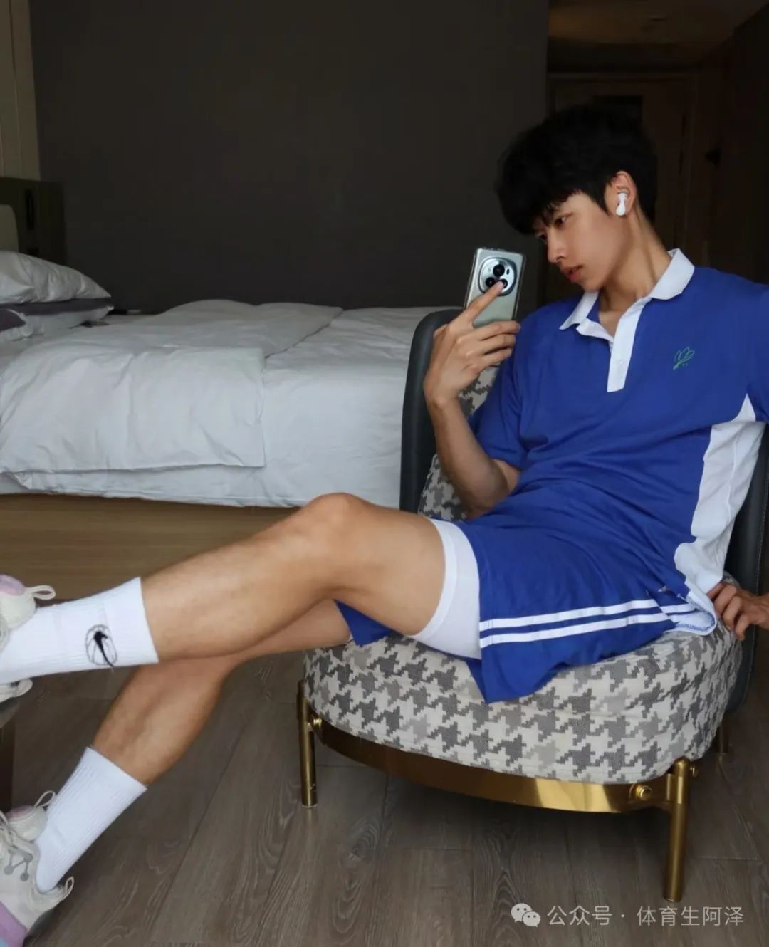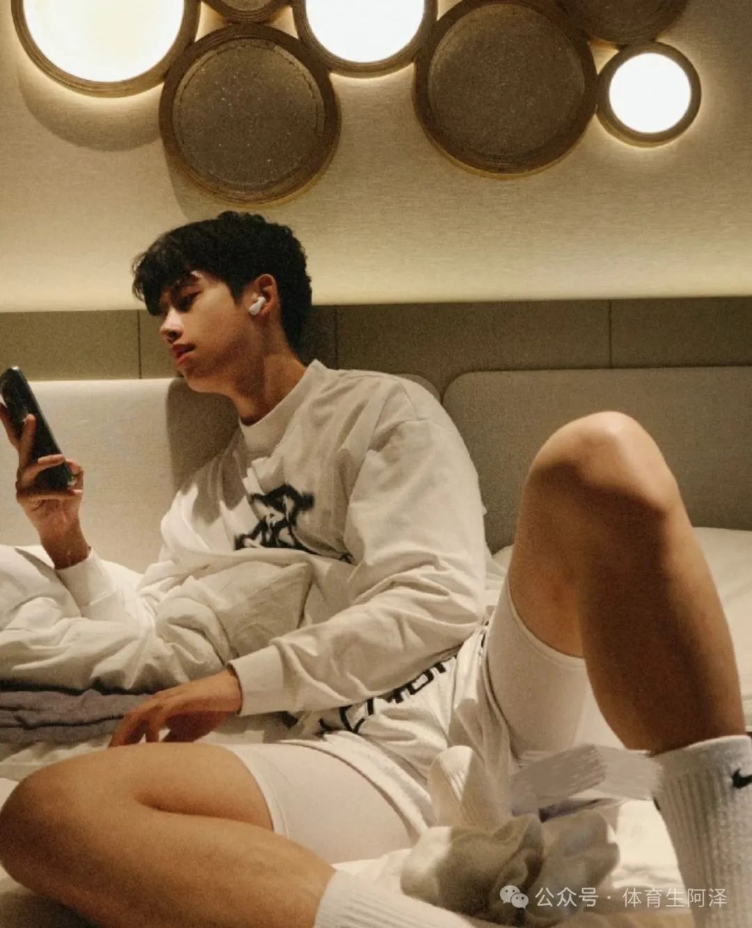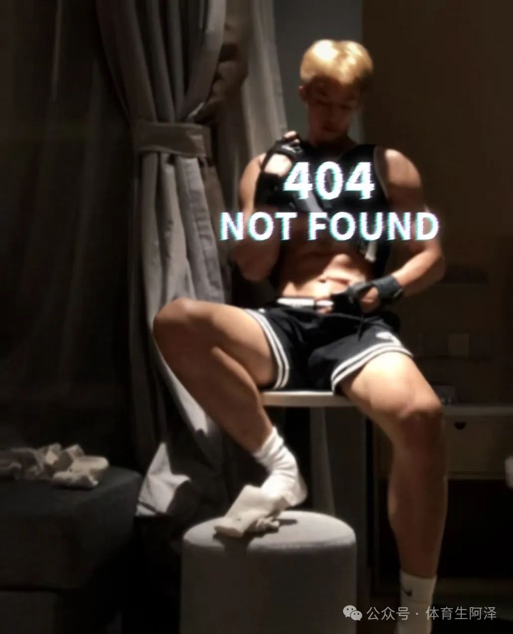 突然发现,不管是哪张照片白袜永远是核心,这张照片和核心是腹肌和白袜黑皮。灯光照耀在腹肌和粗壮的大腿上,让人的注意力都集中在那里了。尤其是这个大腿,不知道要是摸起来该有多舒服啊!