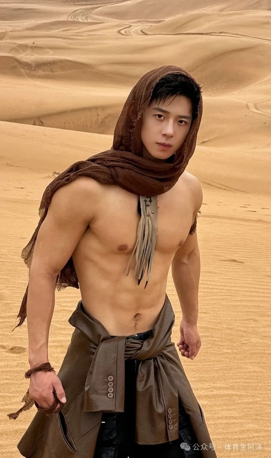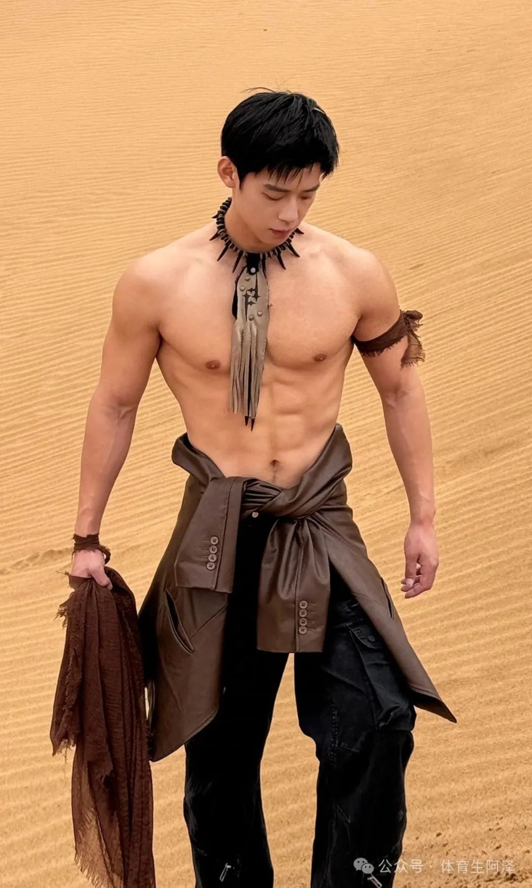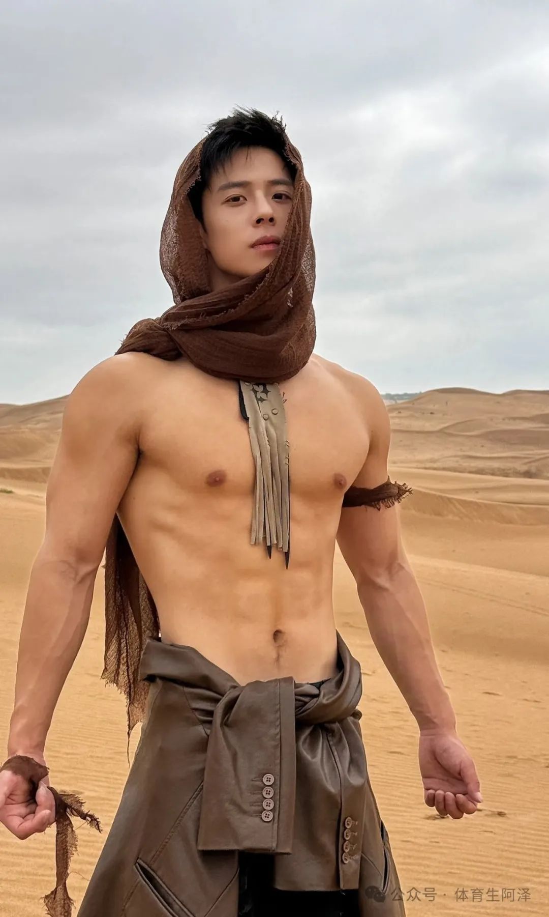 翘臀都已经有了,那么腹肌还会远吗?这种在沙漠里拍照的场景真的异域风格满满啊!好想边疆蛮荒之地的使者一样,充满着力量感。虬龙般的青筋附着在这个爆发式的手臂上,简直满屏的荷尔蒙啊哈哈哈!
