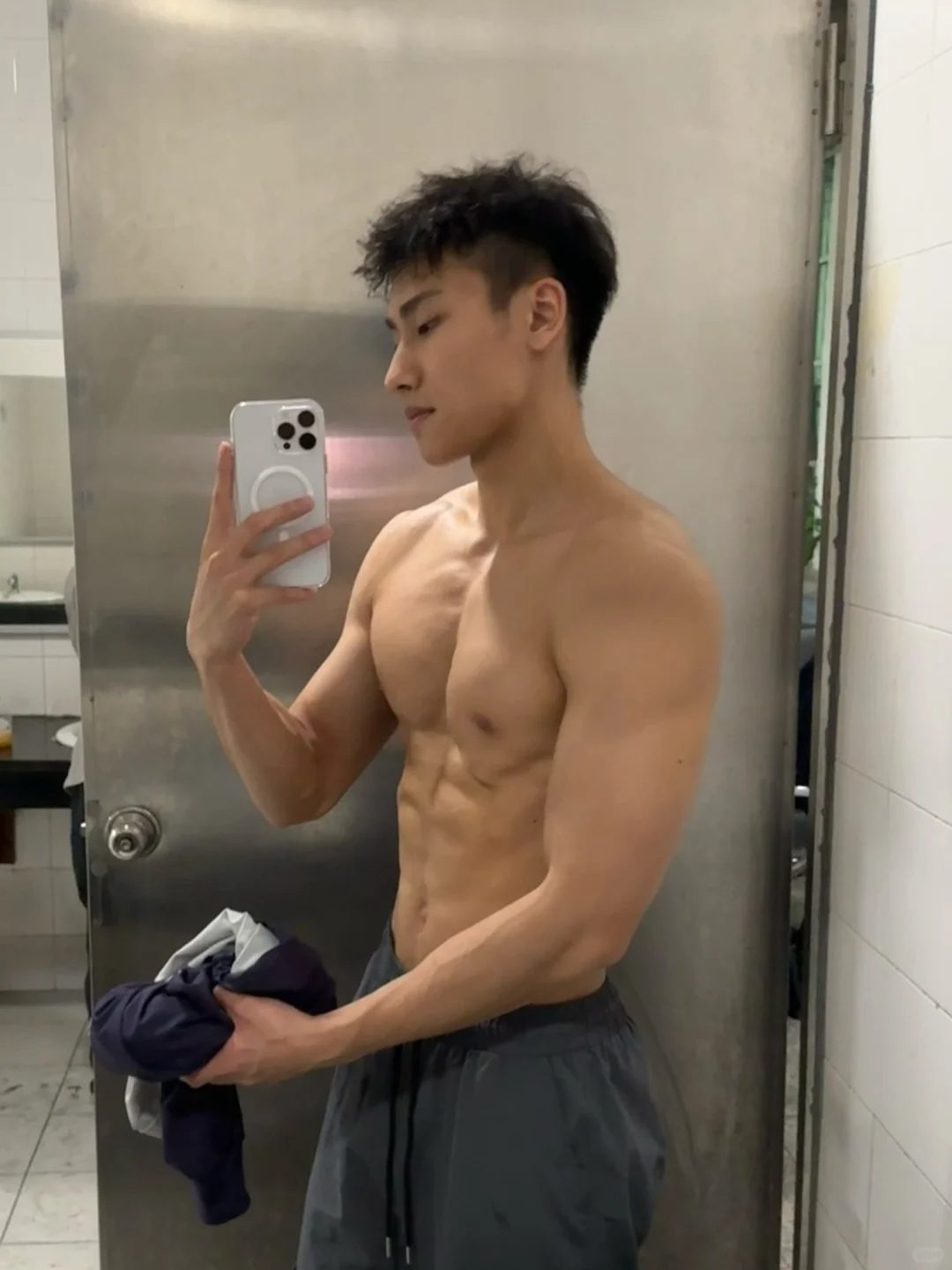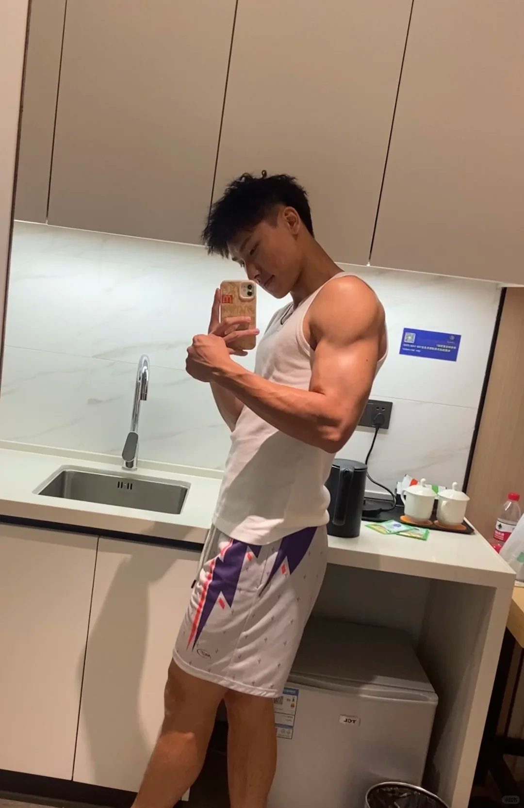 翻开他的小红书,仿佛打开了一本《体育生的完美日常》,篮球场上腾空扣篮的瞬间、健身房硬拉时暴起的青筋、泳池边湿发滴水的“出水芙蓉”名场面……每张照片都精准狙击少女心。