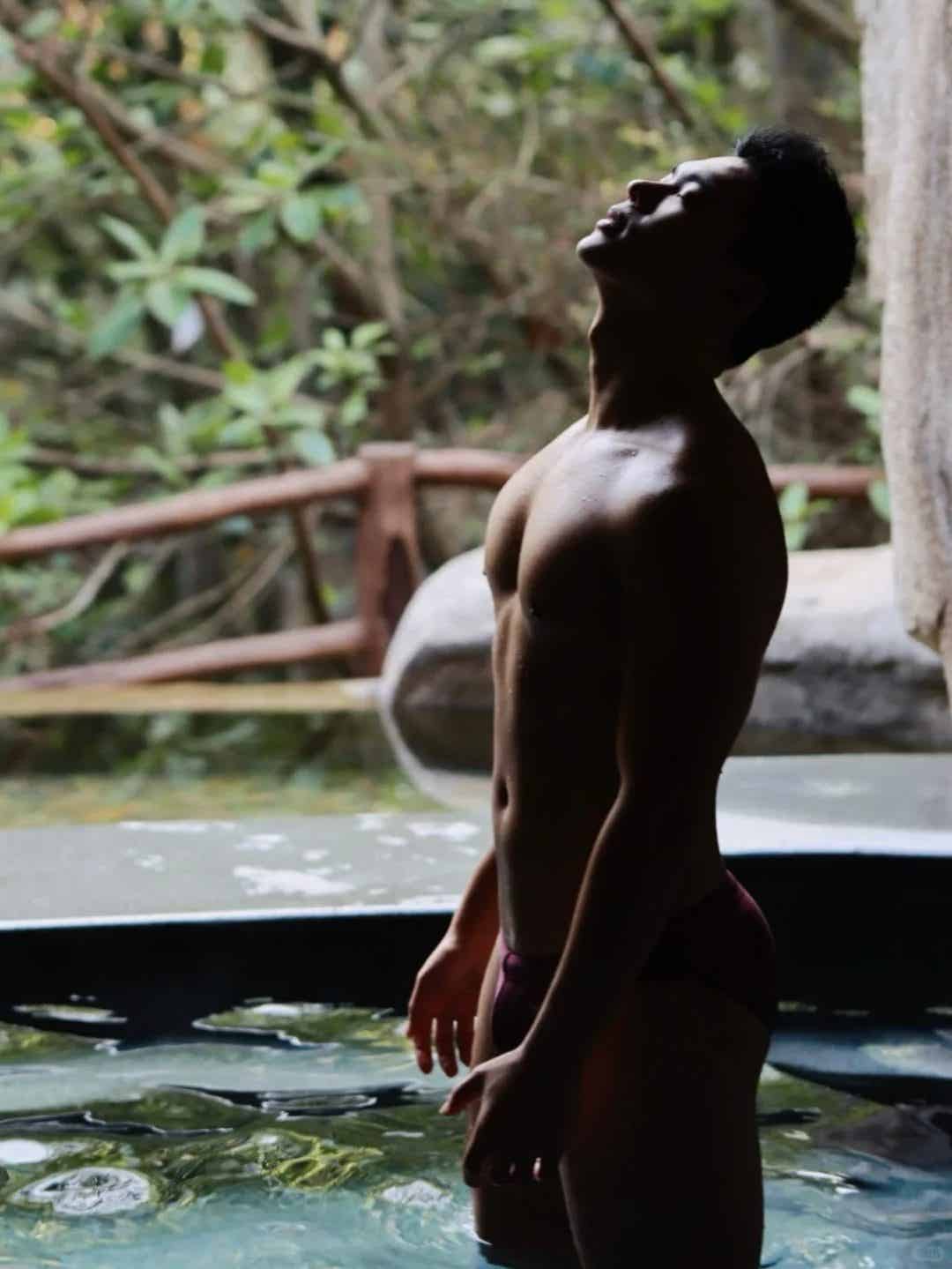 其实翻到他三年前的照片,还是那条黑皮泳裤,但当时的肌肉维度明显没现在饱满。那时候的他偏干,线条有,但没现在的厚度。