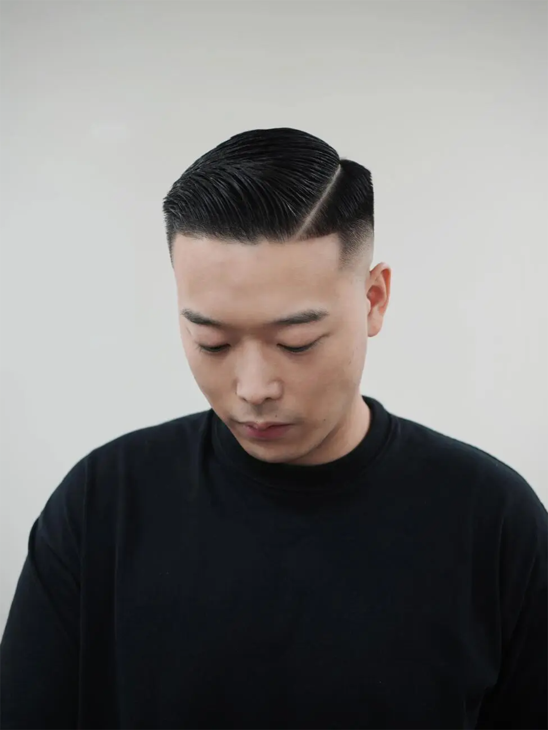 侧背短发也是一款特别轻熟帅气的造型,相比传统的大背头发型来说,会显得更加轻盈时尚!两边的头发同样剪出渐变的效果,顶区的头发全部往后梳并打造侧分效果,整体看起来特别阳光大气,而且一点也不显油腻,潮范十足!