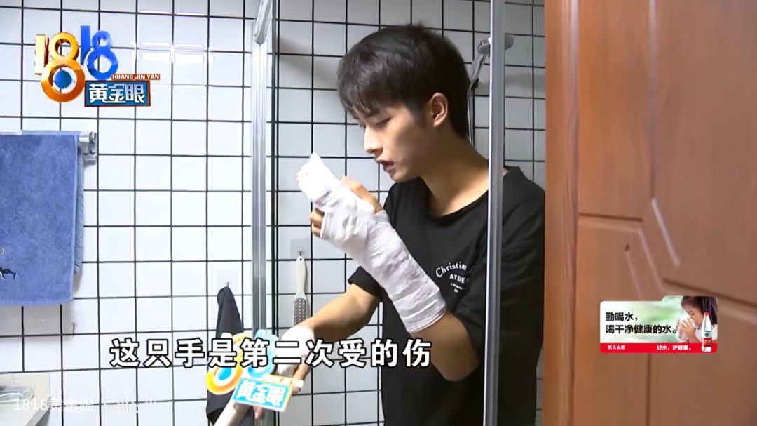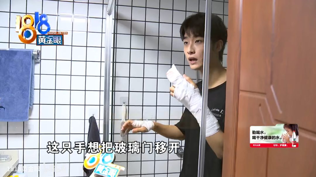 宁波小张:就抬手移个浴室门,玻璃碎得手肌腱都断了,疼得皱眉还强装镇定。这颜值配这糟心事,我真的可以!