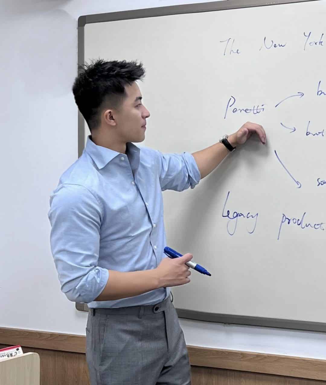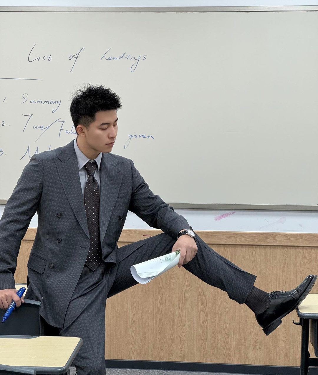 课堂之上,他以挺拔身姿立于讲台前,剪裁合体西装如第二层皮肤熨帖包裹,透出为人师者那分外的严谨与庄严;而健身场景里,他又以截然迥异的形象登场——那副结实肌肉线条构成充满爆发力的健美雕像,汗水浸透的紧身衣衫下,充满活力的气息扑面而来。