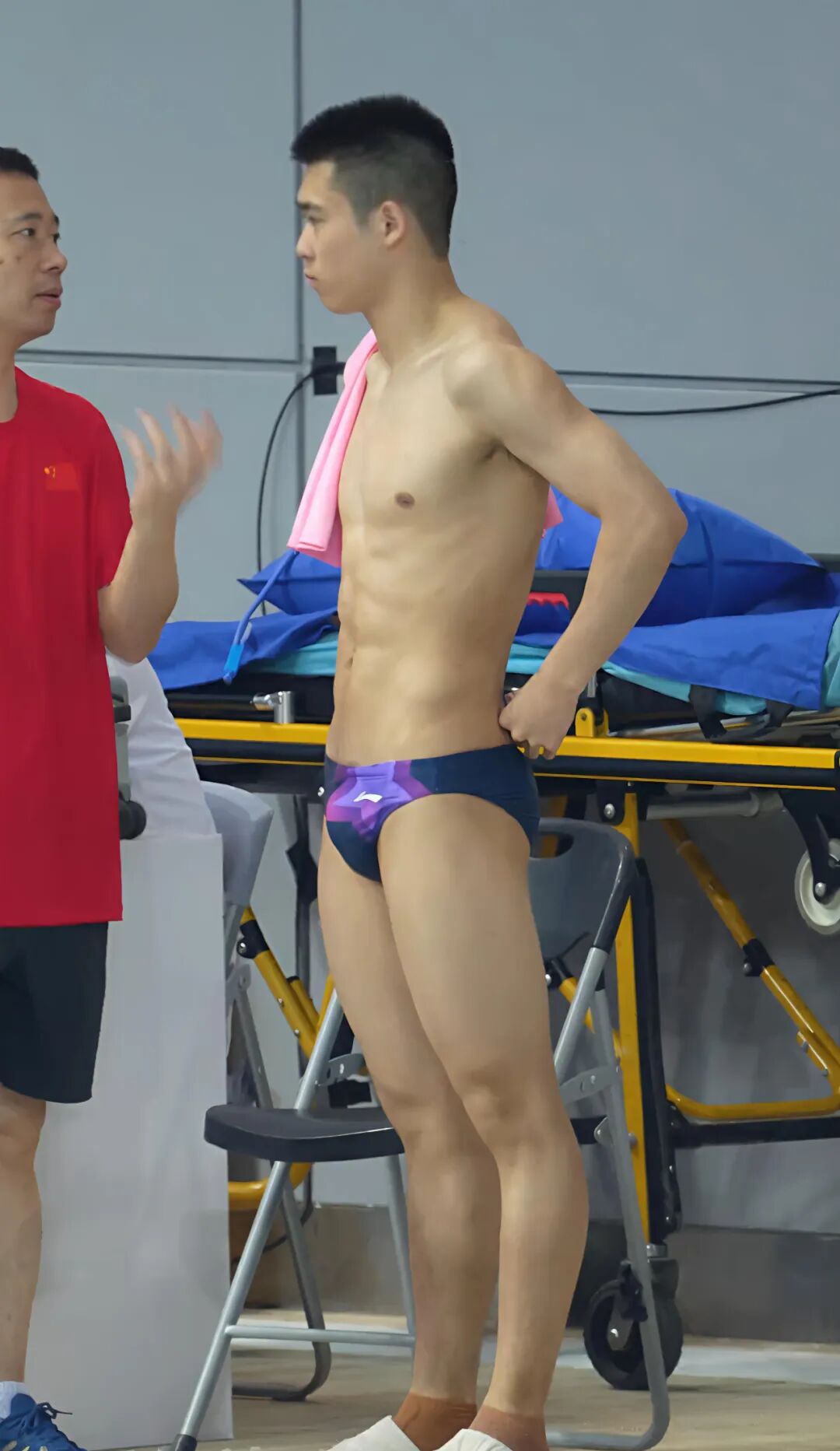 那种天然纯粹的力量美感,是造物给予青春的慷慨,在运动中挥洒,在坚韧中淬炼,在专注中浑然天成。有人低语赞叹“这身材”,可这赞词未免单薄。人们追随这位年轻运动员的每一次腾空、坠落与重新浮起,或许并非因那些耀眼的肌肉本身,而是透过那身血肉壁垒,窥见了人体所能抵达那种力量与姿态的奇美平衡——超越言语,直抵感官深处。