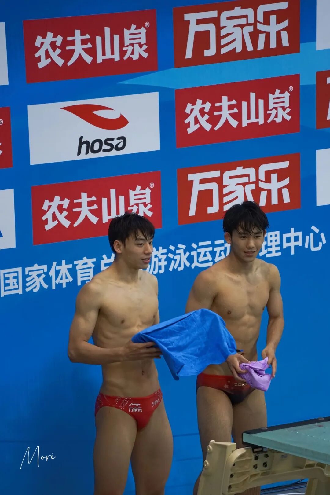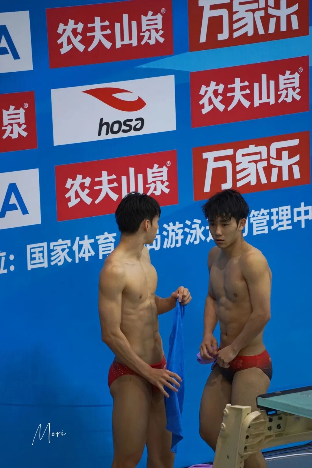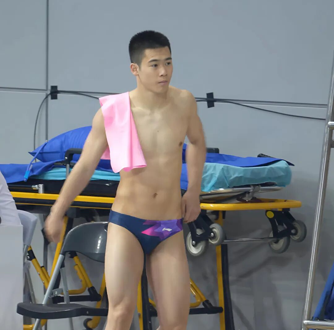 起跳台之上,他再次站定。那修长挺拔的身姿立在十米高的险峻孤悬之地,令人不由凝神屏息。阳光格外偏爱他紧束肌肉的线条,汗津津的皮肤像是给古铜色刷上了一层蜜蜡,闪耀着健劲生命的光泽。短而精悍的寸头使整个轮廓棱角分明,愈发显得凛冽干净。年轻的身躯没有一处赘余,从肩臂到胸腹再到腿部,均匀的肌肉被岁月与水流耐心琢磨——如同古代雕塑家最严谨的手工打磨。那肌肉轮廓,被紧贴的泳裤轮廓勒勒得异常分明,那是力量蛰伏的形状,暗示着下一秒将爆裂喷薄的澎湃生命力。人们抬头仰望,他此刻俨然是神话里一座被神精心雕琢出的塑像,即将挣脱静止,重新活脱于现实世界。