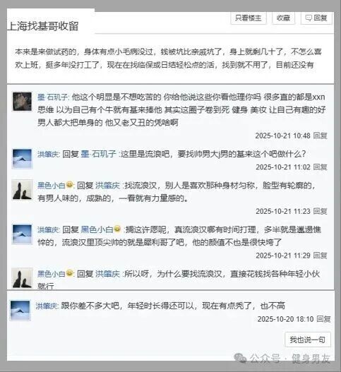 可谁能想到,最近网上居然出现了反转!“流浪吧” 这个地方突然火了起来,大批直男涌进吧里发帖,不是求收留,就是找饭吃,甚至还有直接找 “do” 的。更有意思的是,里面还混着一些充好心人科普 HIV 的,当然,也少不了那些想套路骗钱的,真是鱼龙混杂,啥人都有。