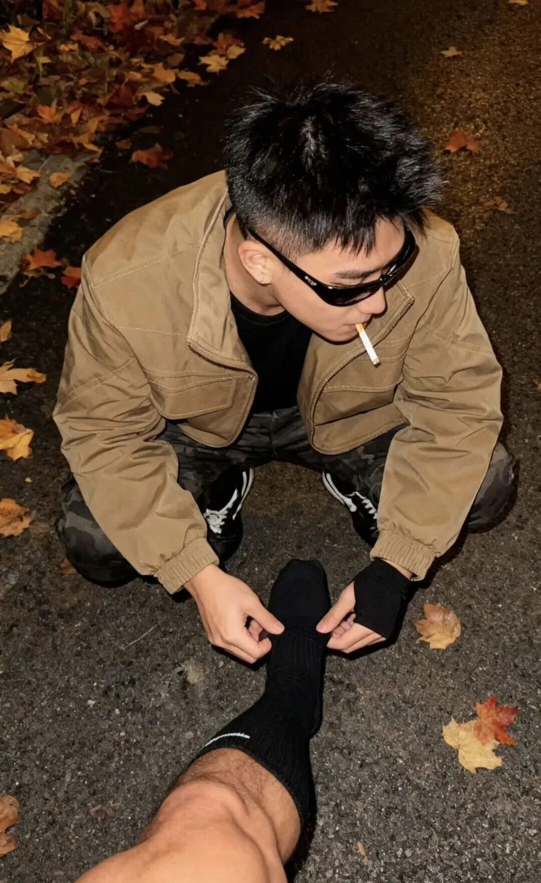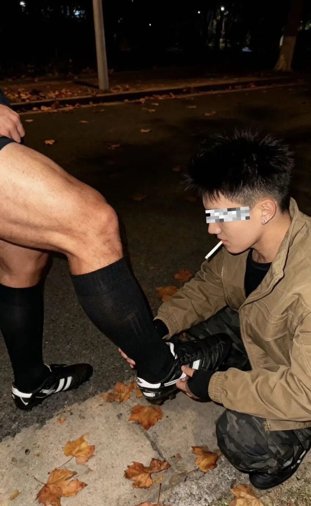 深秋街头惊现暖心一幕🍂运动系男孩单膝跪地为朋友按摩脚踝👟卫衣兜帽下专注的侧颜🎞️这组动图直接让「兄弟情」这个词有了全新定义~