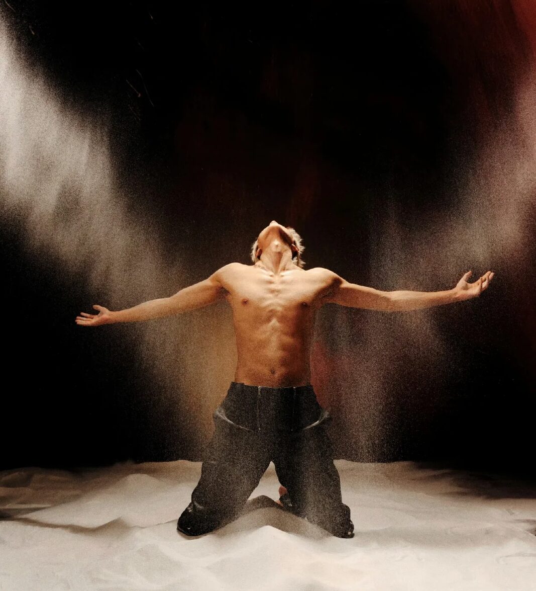 照片里的周峻纬光着膀子,在模拟的盐海中凹造型,胸肌和腹肌轮廓都被勾勒出流畅的肌肉线条,营业是真大方。