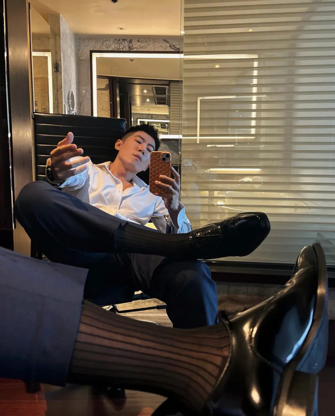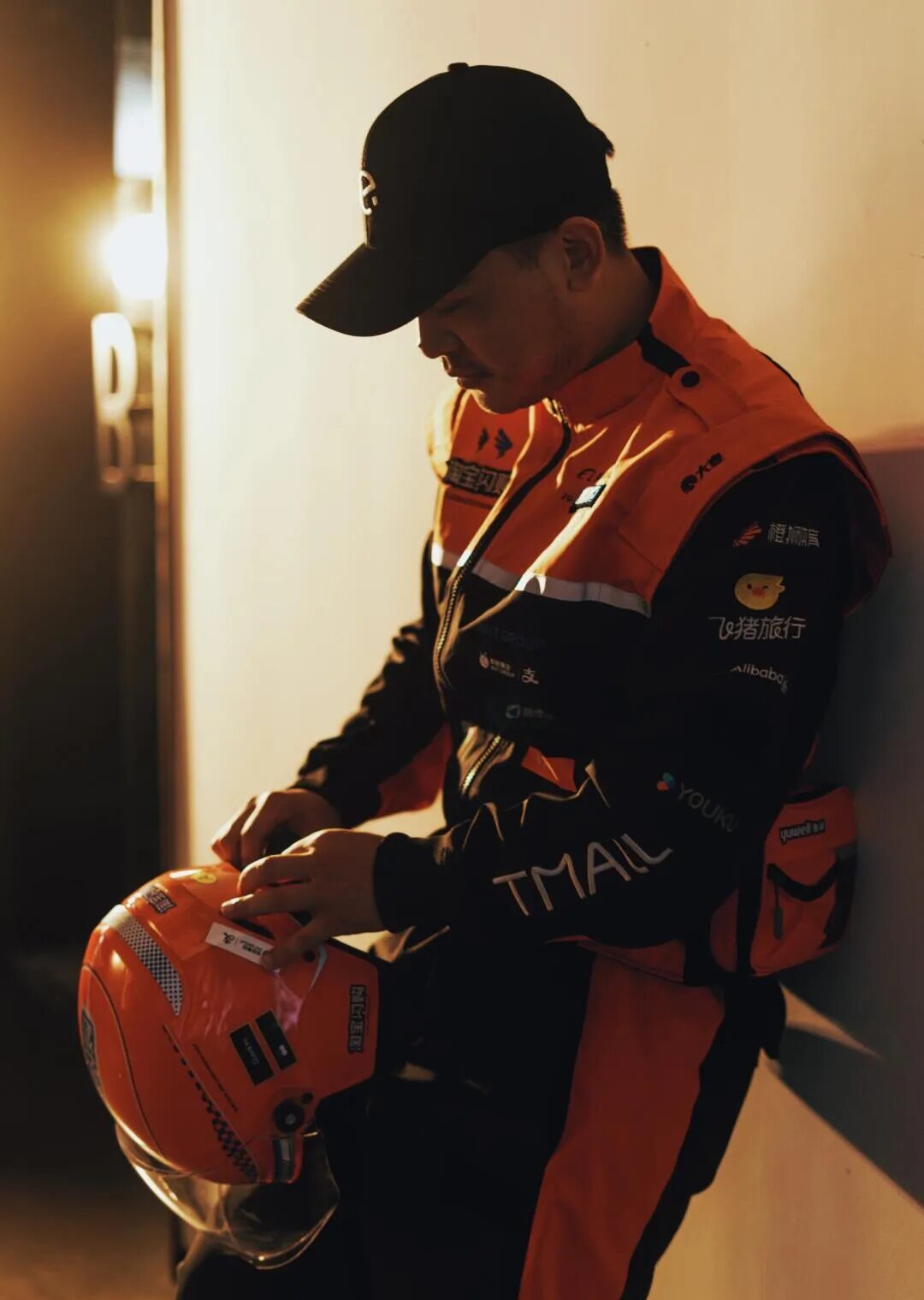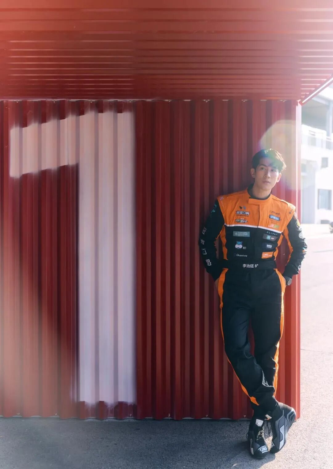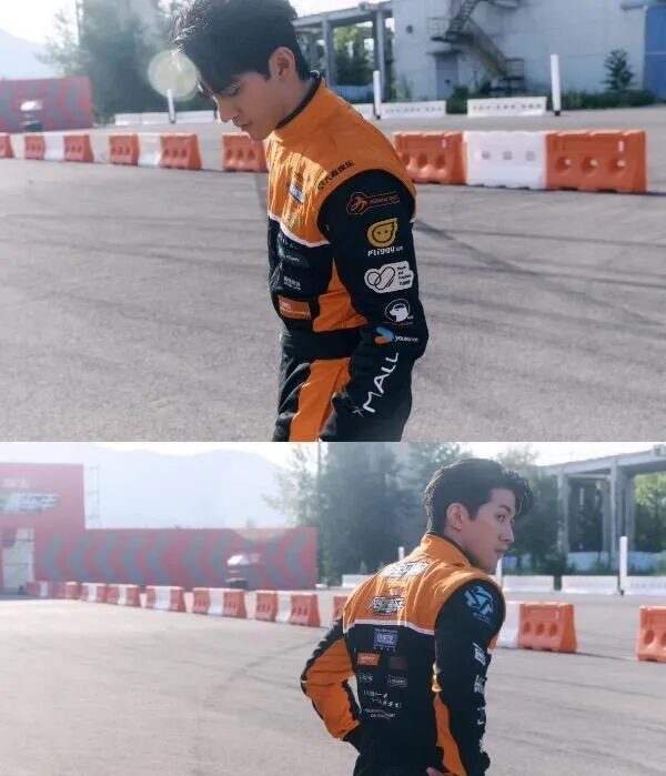 瞧这橙黑撞色设计配上赛车服廓形🏎️肩部挺括线条瞬间塑造出倒三角身材💪腰间工具包巧妙勾勒出腰线🛠️连等红绿灯的随意抓拍都像在拍时尚大片📸