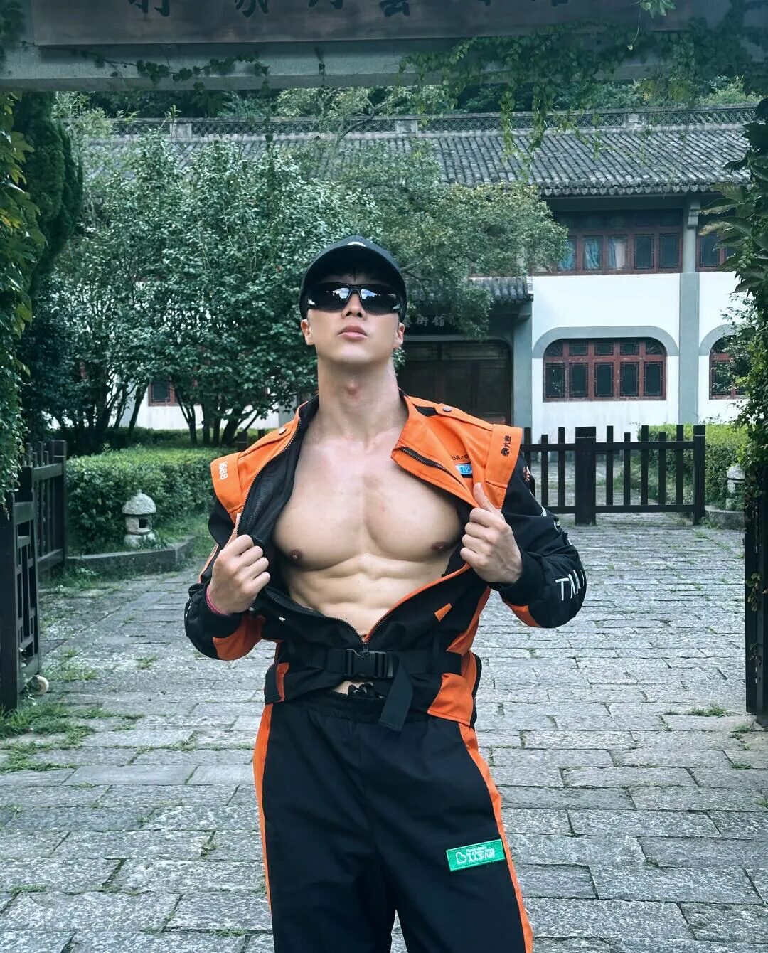 闪购骑手制服抵挡不住大胸肌,行走的潮流单品
