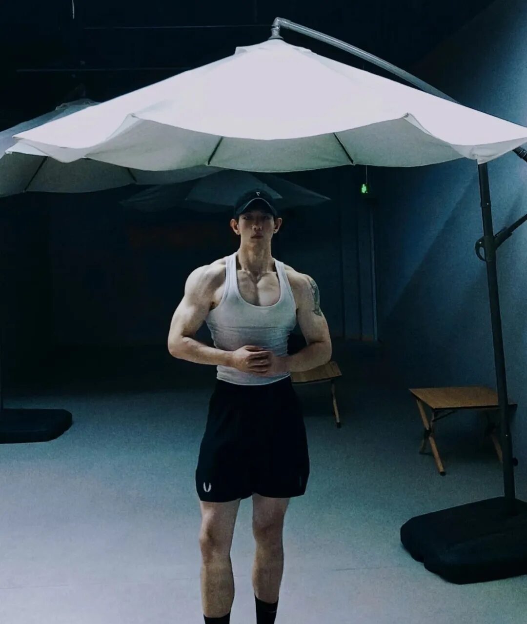 看他穿白T训练时的肌肉控制🎽