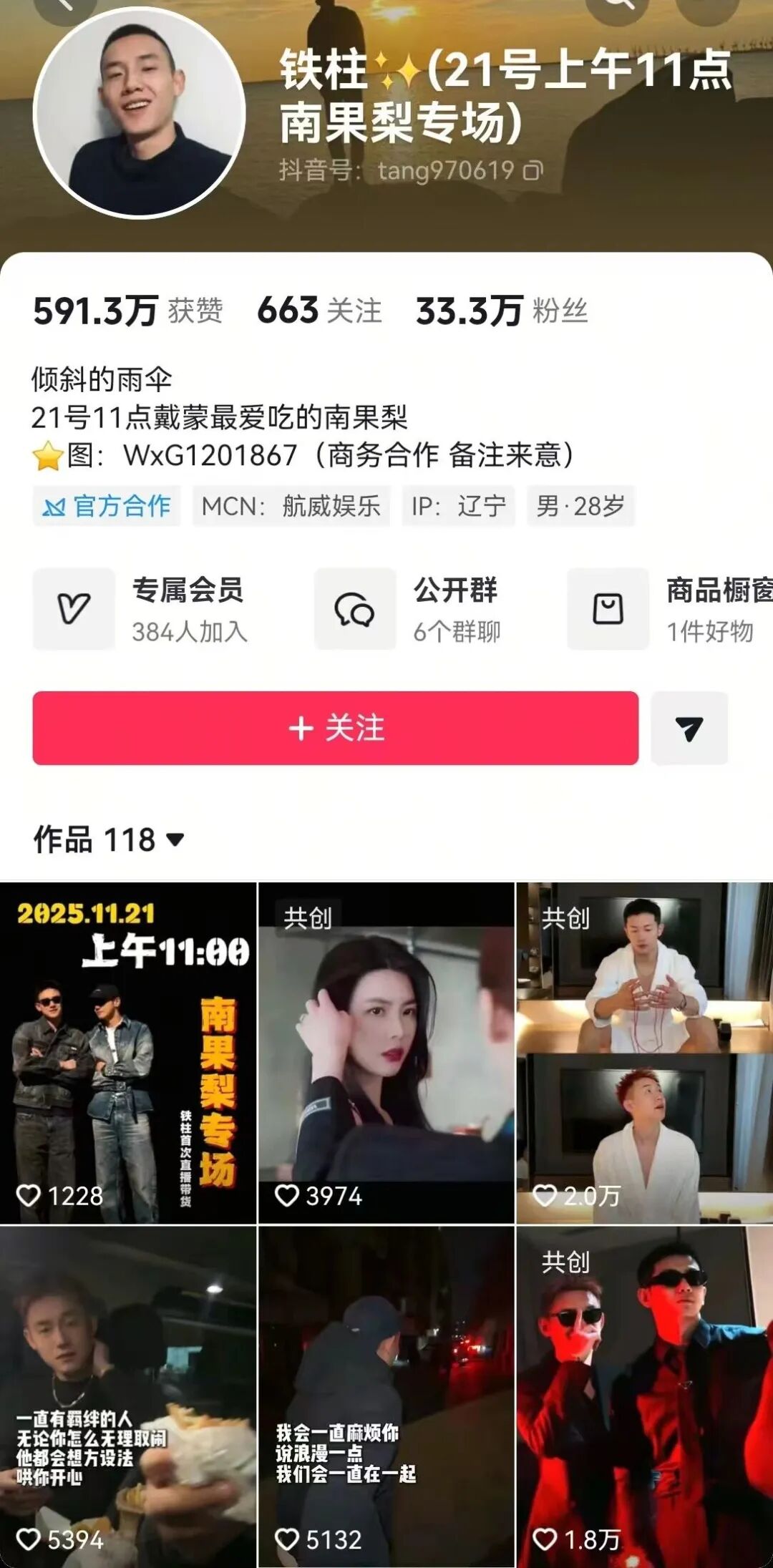 铁柱也是网红,来自辽宁,28岁。