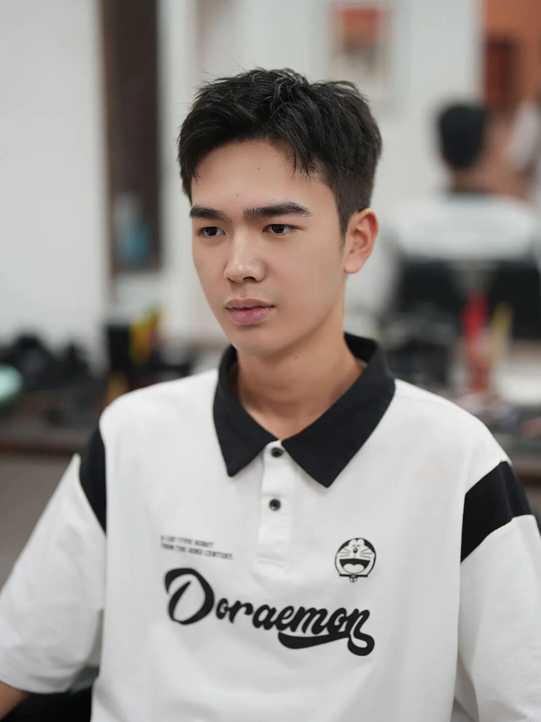 短碎盖发型是男生比较常见的刘海发型,从传统的锅盖头发型演变而来,也是一款比较减龄的造型。