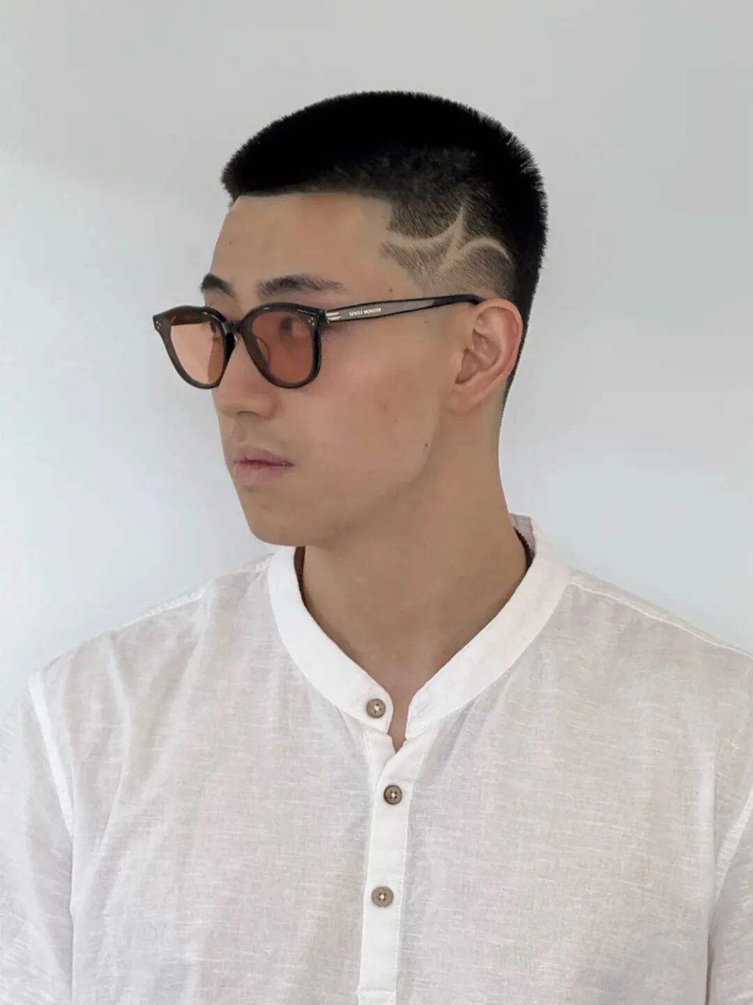 比如上面这款刻痕寸头发型,整体造型与传统的寸头发型基本一样,区别是在寸头的基础上,在其侧面刻出一道轮廓分明的横杠或者图案,看起来有一种痞帅痞帅的感觉,而且还充满了个性!
