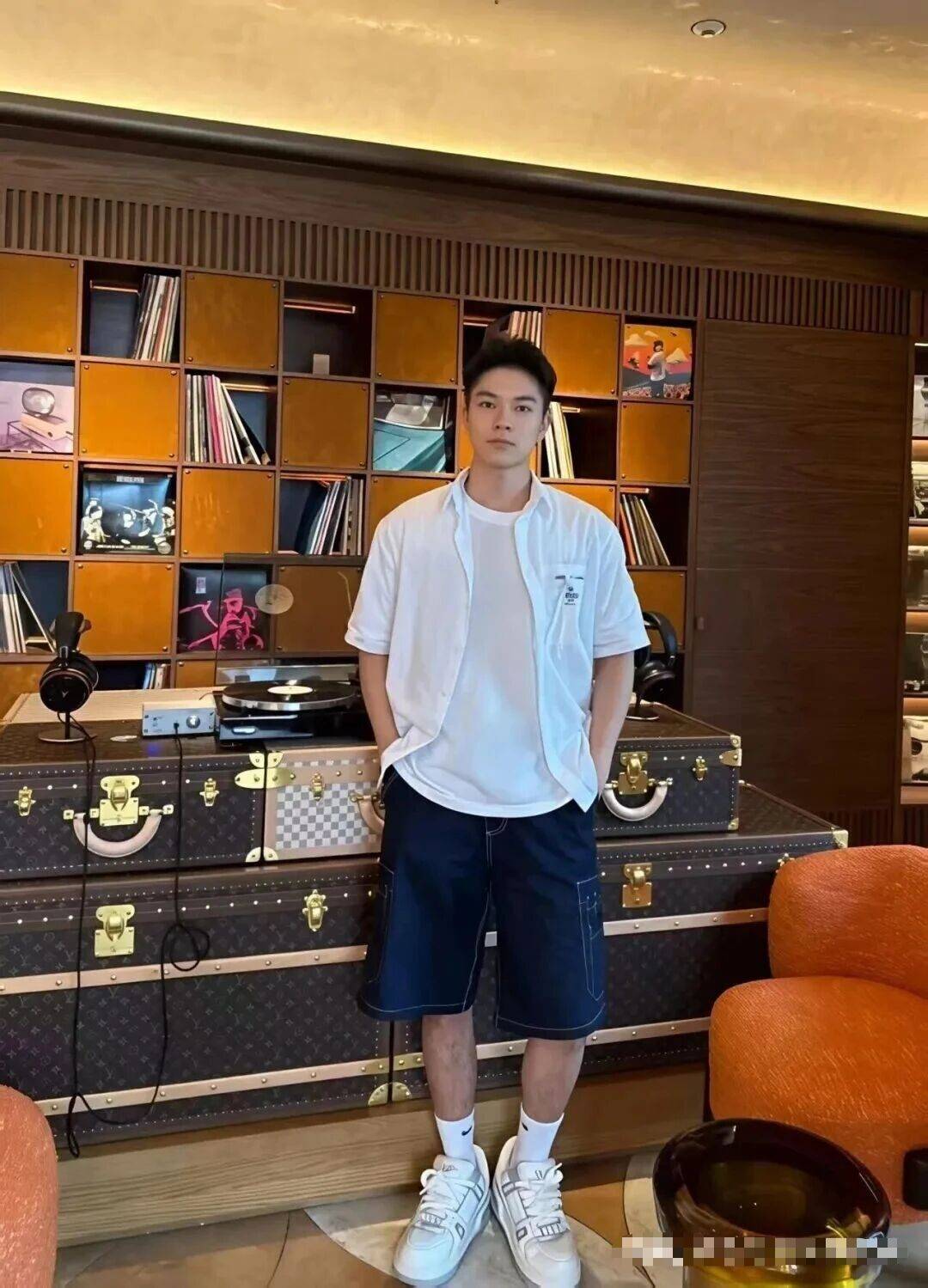 还有他去旅行时在泳池边拍的照片,阳光洒在身上,肌肉线条在阳光下更显好看,青春活力直接拉满。