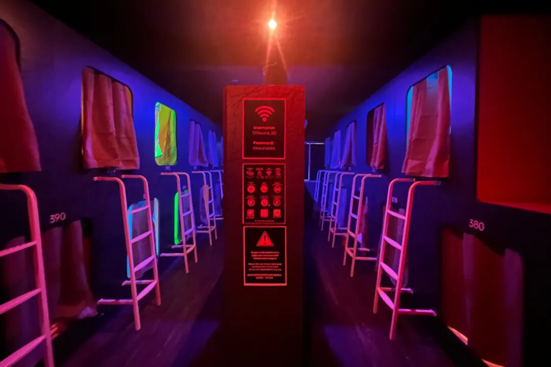 康康:同乐有5间单人间,一间可以容纳2-4人,还有64个床位。10桑拿那边是我们的二店,叫做同乐Black,也可以过夜,提供30个床位。两边加起来的话,一晚可以接待大概100人左右。