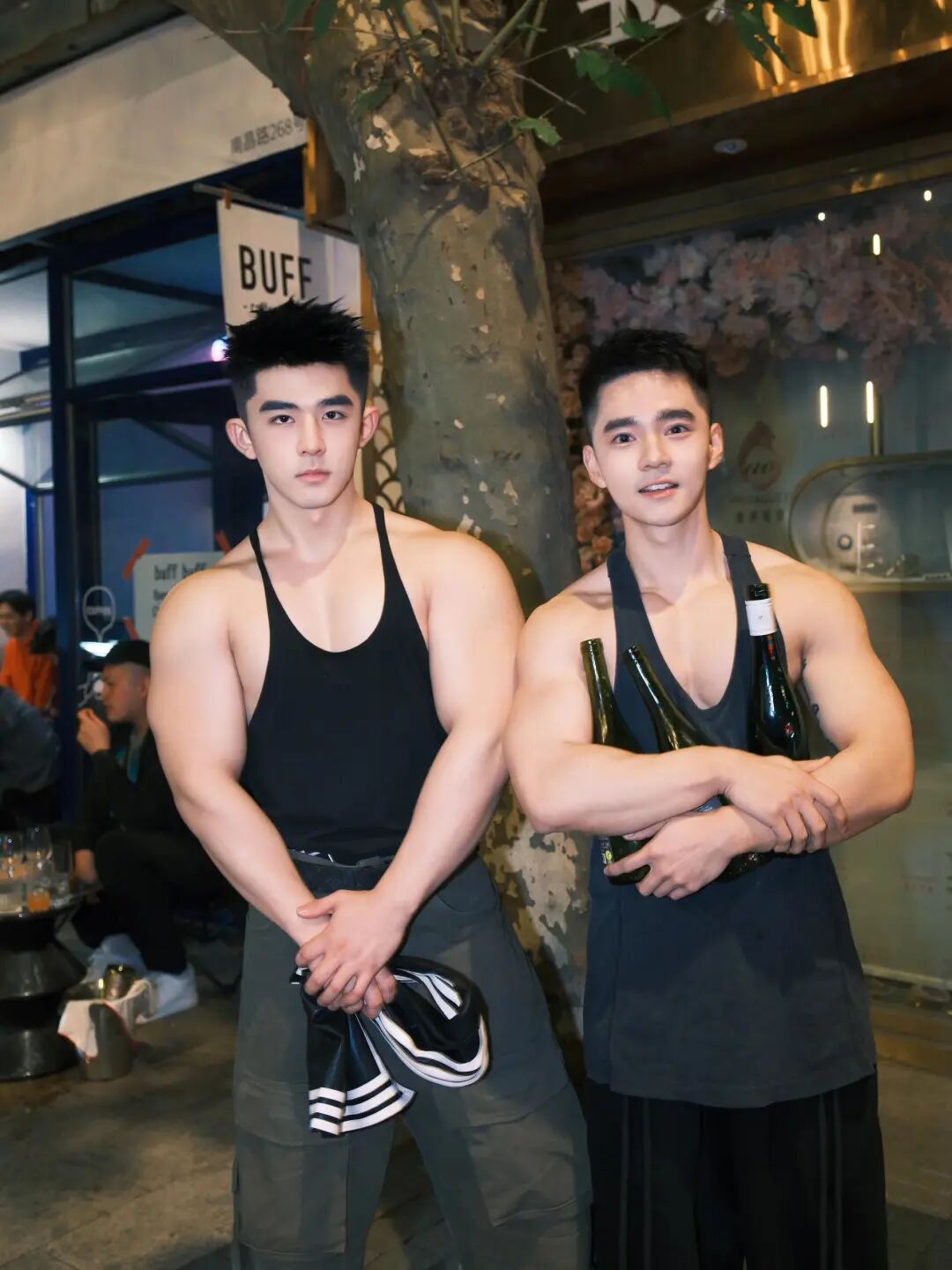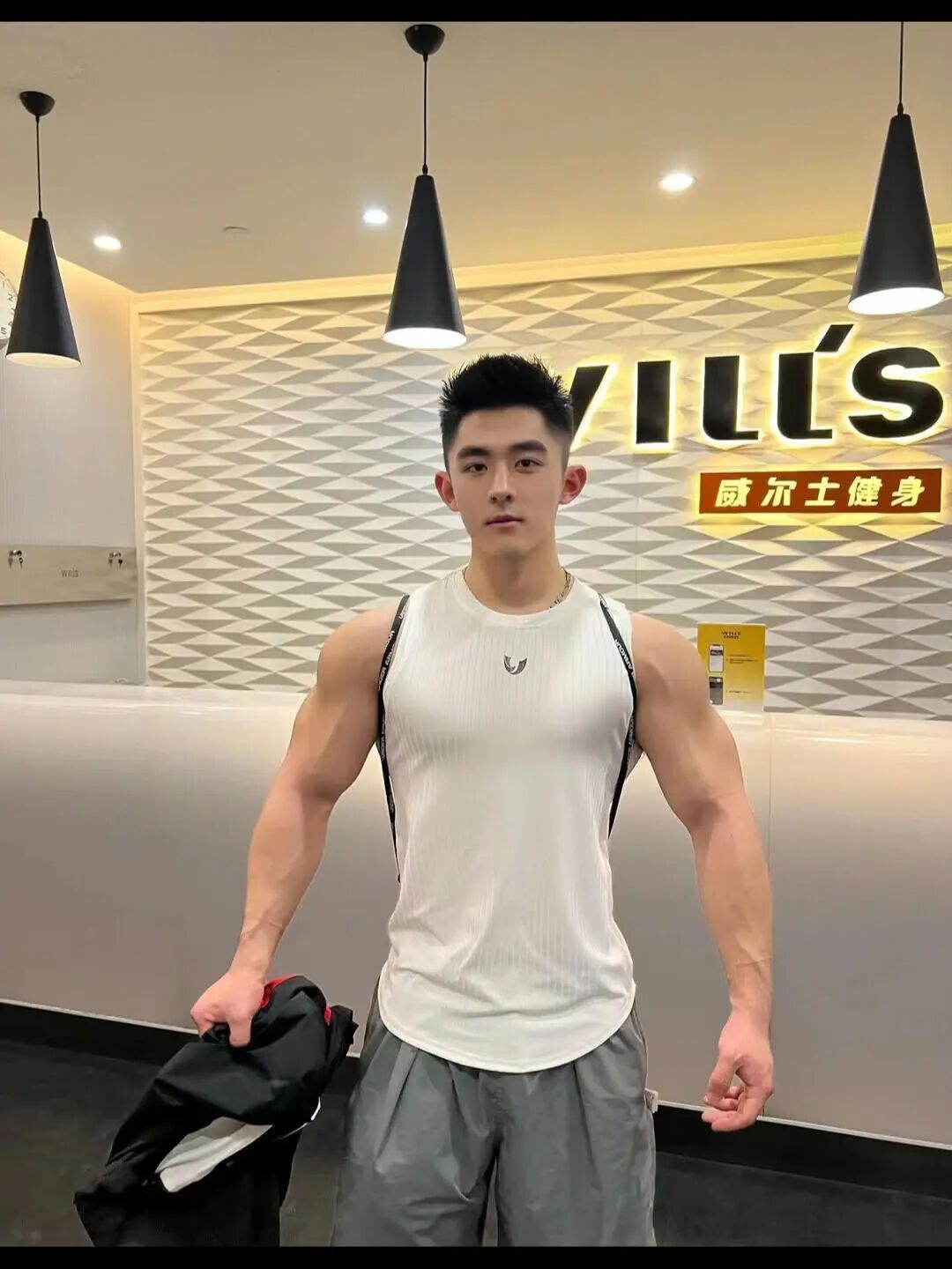 宽阔而厚实的“虎头肌”为他撑起了完美的倒三角骨架,让他即便穿上最简单的工字背心,也能散发出无与伦比的男性荷尔蒙。