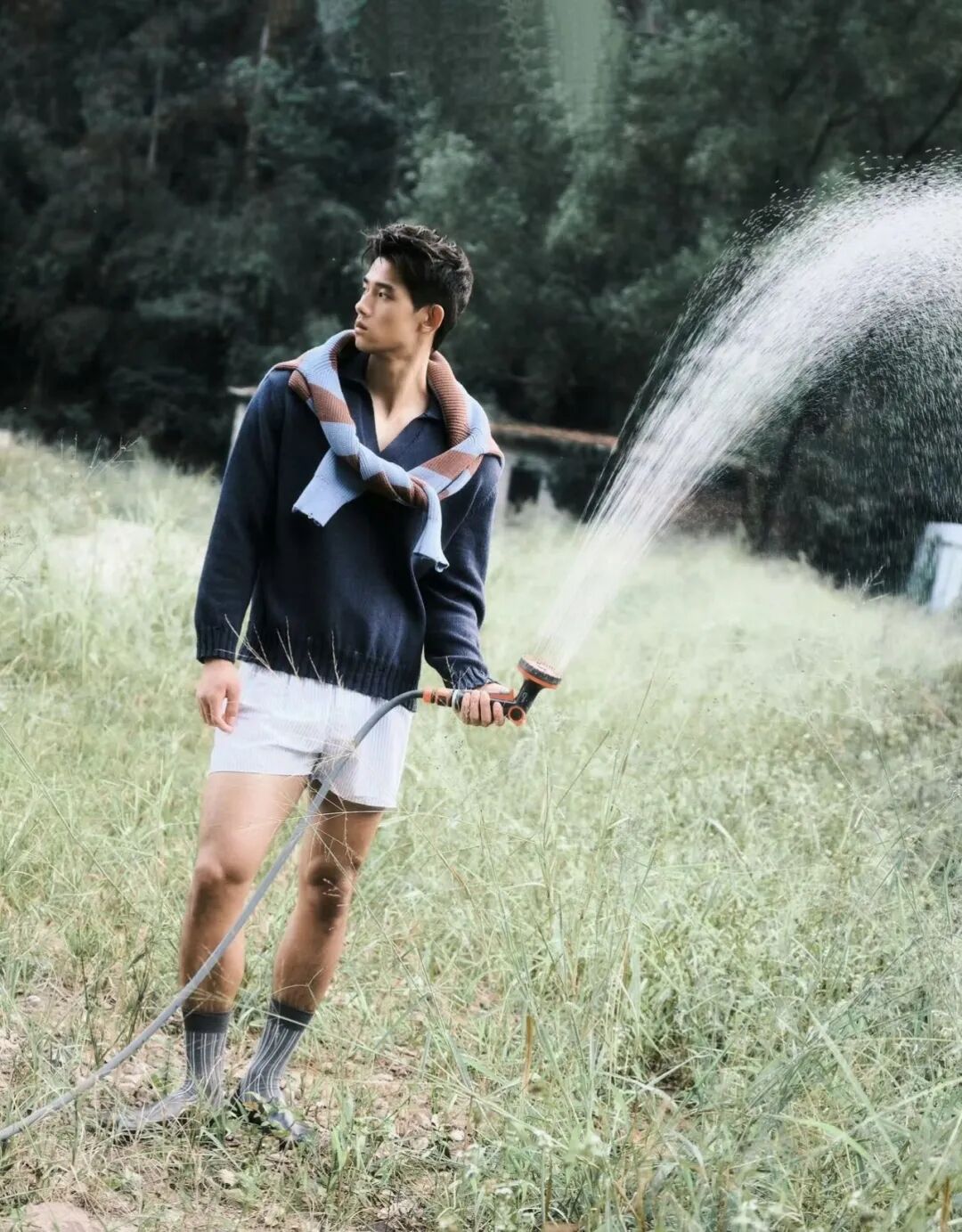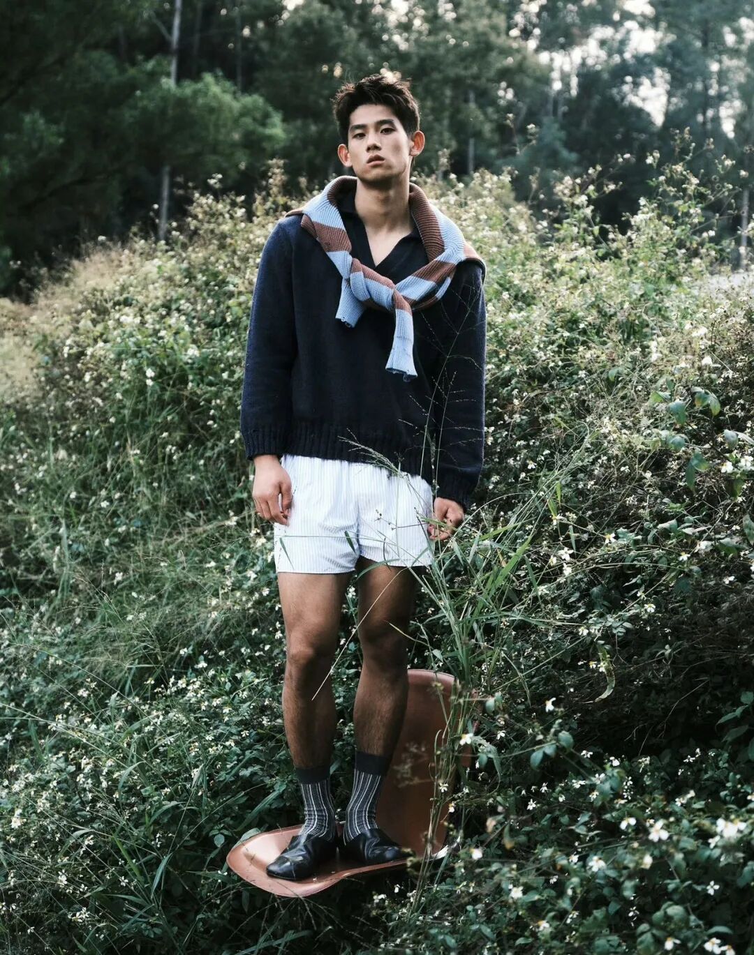 咱们小哥即使穿上衣服,也能凭借褐色长袜和立体精致的五官迅速圈粉!
