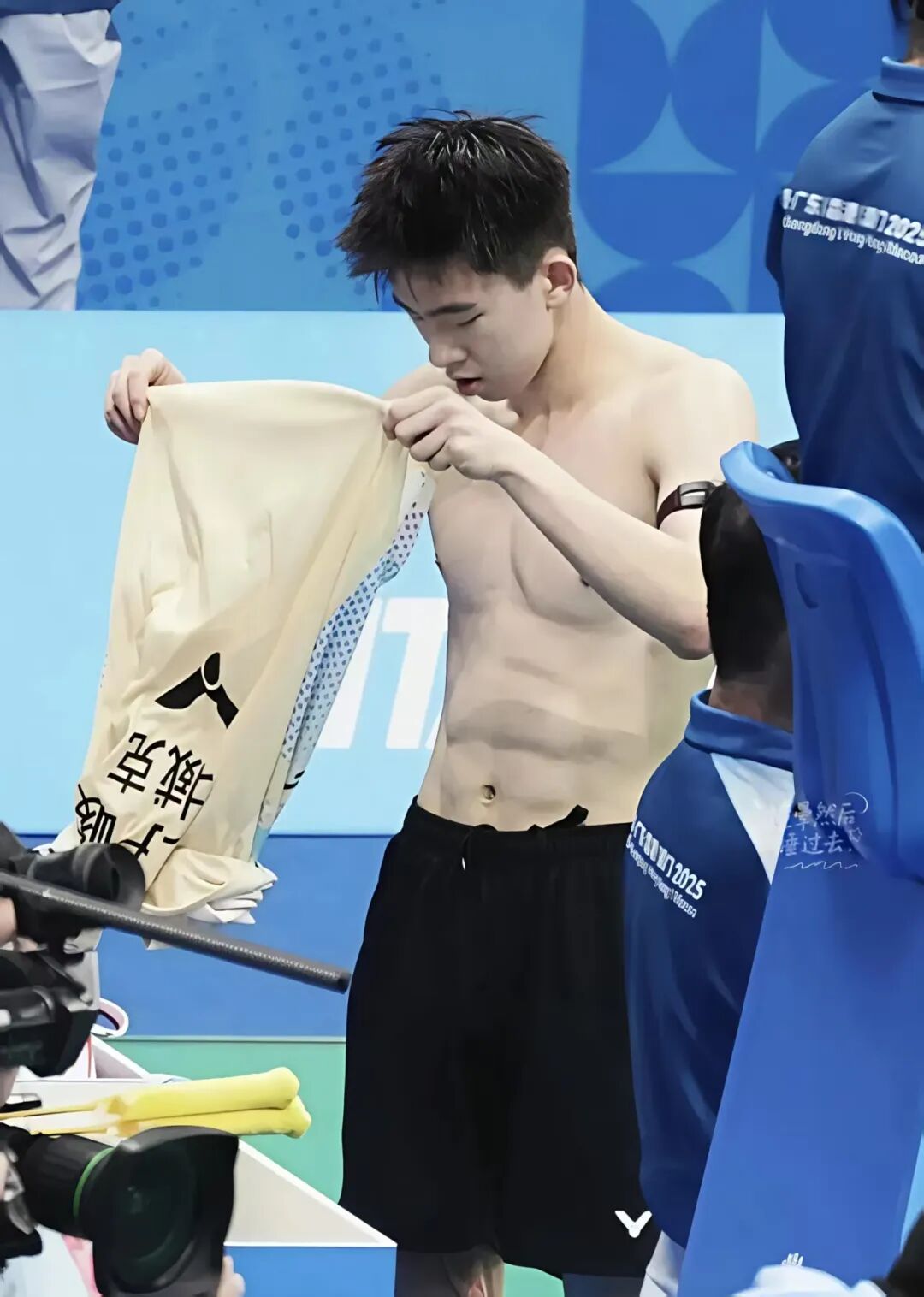 他中场休息时换衣服的画面。阳光透过场馆的玻璃窗洒在他的身上,照亮了汗水折射出的晶莹光泽,也勾勒出胸肌饱满的轮廓与腹肌清晰的沟壑。那不是健身房里刻意打磨的“完美身材”,而是带着运动后红晕与汗珠的鲜活质感:肩背的肌肉线条因刚刚的剧烈运动仍在微微颤动,腰腹的人鱼线在呼吸间若隐若现,每一块肌肉的起伏都诉说着对极限的挑战。